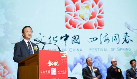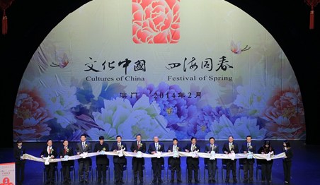國務(wù)院僑辦、澳門歸僑總會主辦的“文化中國?四海同春”文藝演出3月28日八時假綜藝館盛大舉行,由國家頂級著名演員董文華、閻維文、王秀芬、蔡國慶、李玉剛、于魁智、李勝素、胡海寬等在男女聲獨(dú)唱、京劇節(jié)目中獻(xiàn)出精堪演技,總政歌舞團(tuán)擔(dān)綱歌舞演出。 全國政協(xié)副主席何厚鏵,中聯(lián)辦副主任李剛,國務(wù)院僑辦副主任任啟亮,社會文化司司長張?jiān)?,原國?wù)院僑辦主任、原新華社澳門分社社長郭東坡,外交部駐澳特派員 公署特派員胡正躍,全國人大常委賀一誠,全國政協(xié)常委楊俊文、顏延齡,檢察長何超明,澳門基金會行政委員會主席吳志良,以及歸僑總會會長黎振強(qiáng)、常務(wù)副會 長劉藝良、理事長王彬成、監(jiān)事長康寧英主持剪彩,晚會正式拉開帷幕。 晚會的演出節(jié)目精彩,陣容鼎盛。精湛技藝贏得現(xiàn)場二千多名觀衆(zhòng)掌聲雷動,從全場澎湃的熱鬧歡樂氣氛中,由衷感受到國家向澳門同胞送上的美好祝福。