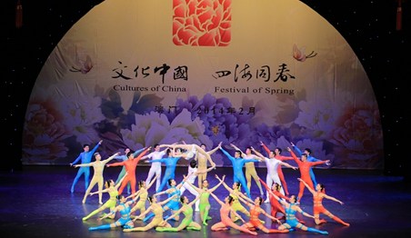 由國務(wù)院僑務(wù)辦公室和澳門歸僑總會主辦的“文化中國?四海同春” 重臨濠江,2月15日和16日一連兩晚在澳門文化中心綜合劇院獻(xiàn)演精彩節(jié)目,向澳門社會各界同胞送上最親切的春節(jié)慰問,而且兩場精彩節(jié)目為澳門社會各界同胞留下一次歡度春節(jié)的難忘回憶。