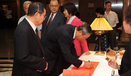 僑總負責(zé)人於國慶期間獲邀赴京出席新中國建國六十周年的慶?;顒樱艿接嘘P(guān)方面熱情接待。國慶日上午僑總在會址舉行茶會,觀賞北京舉行慶祝活動的現(xiàn)場直播。