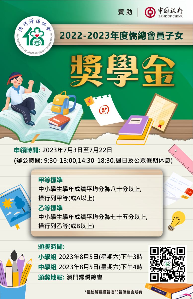 點擊下載 2022-2023年度僑總會員子女獎學金申領辦法及申請表