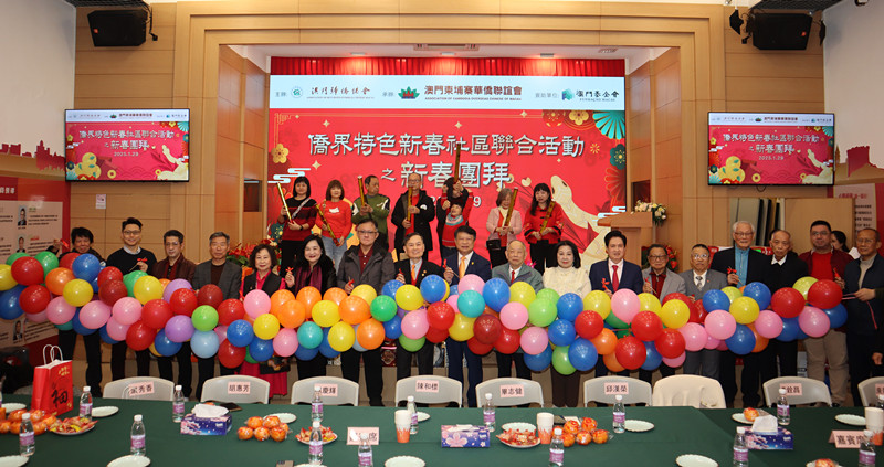 由澳門歸僑總會主辦、柬埔寨華僑聯(lián)誼會承辦的“僑界特色新春社區(qū)聯(lián)合活動之新春團拜”1月29日舉行。兩單位負責人與逾百名柬埔寨華僑、僑眷歡聚一堂,為僑界送上祝福,稱將續(xù)發(fā)揮僑界自身的優(yōu)勢推動澳門僑務(wù)工作。