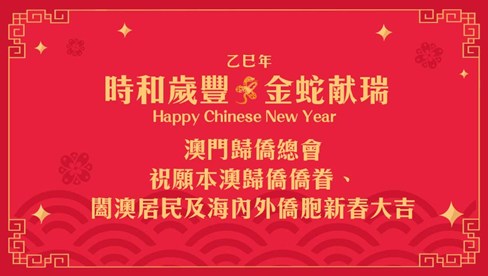 澳門(mén)歸僑總會(huì)祝願(yuàn)本澳歸僑僑眷、闔澳居民及海內(nèi)外僑胞新春大吉