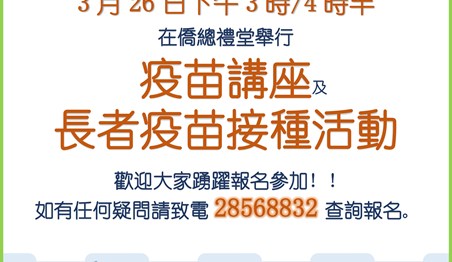 新冠疫苗接種專題講座現(xiàn)正接受報名
