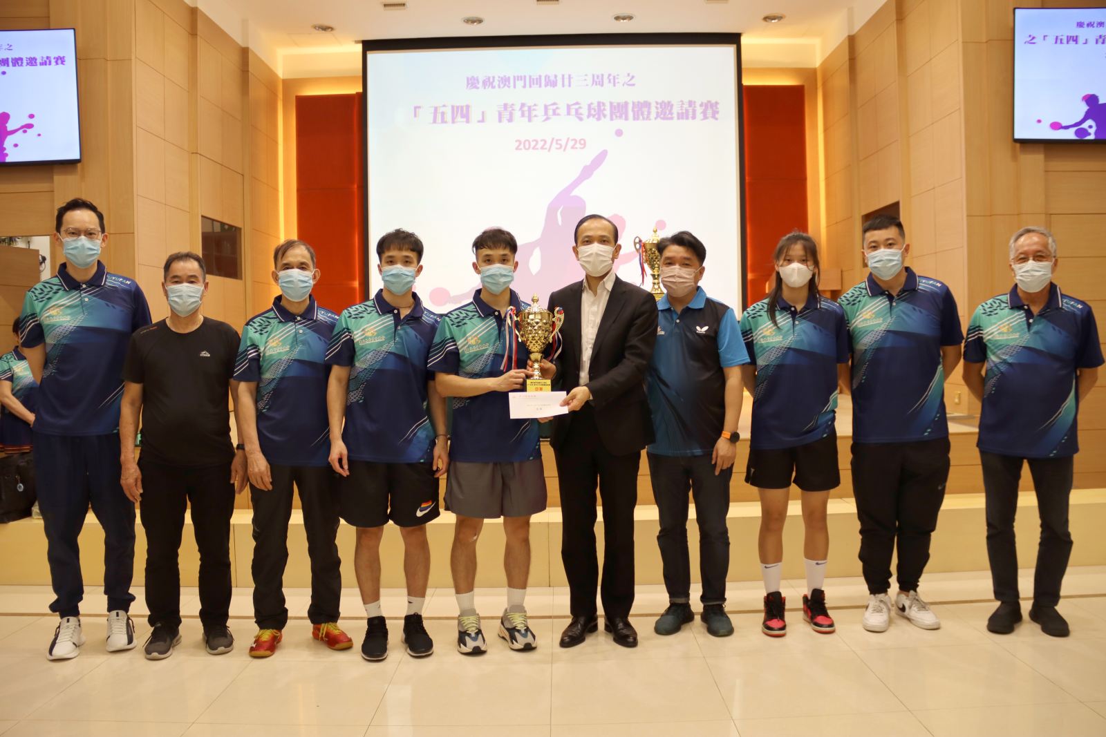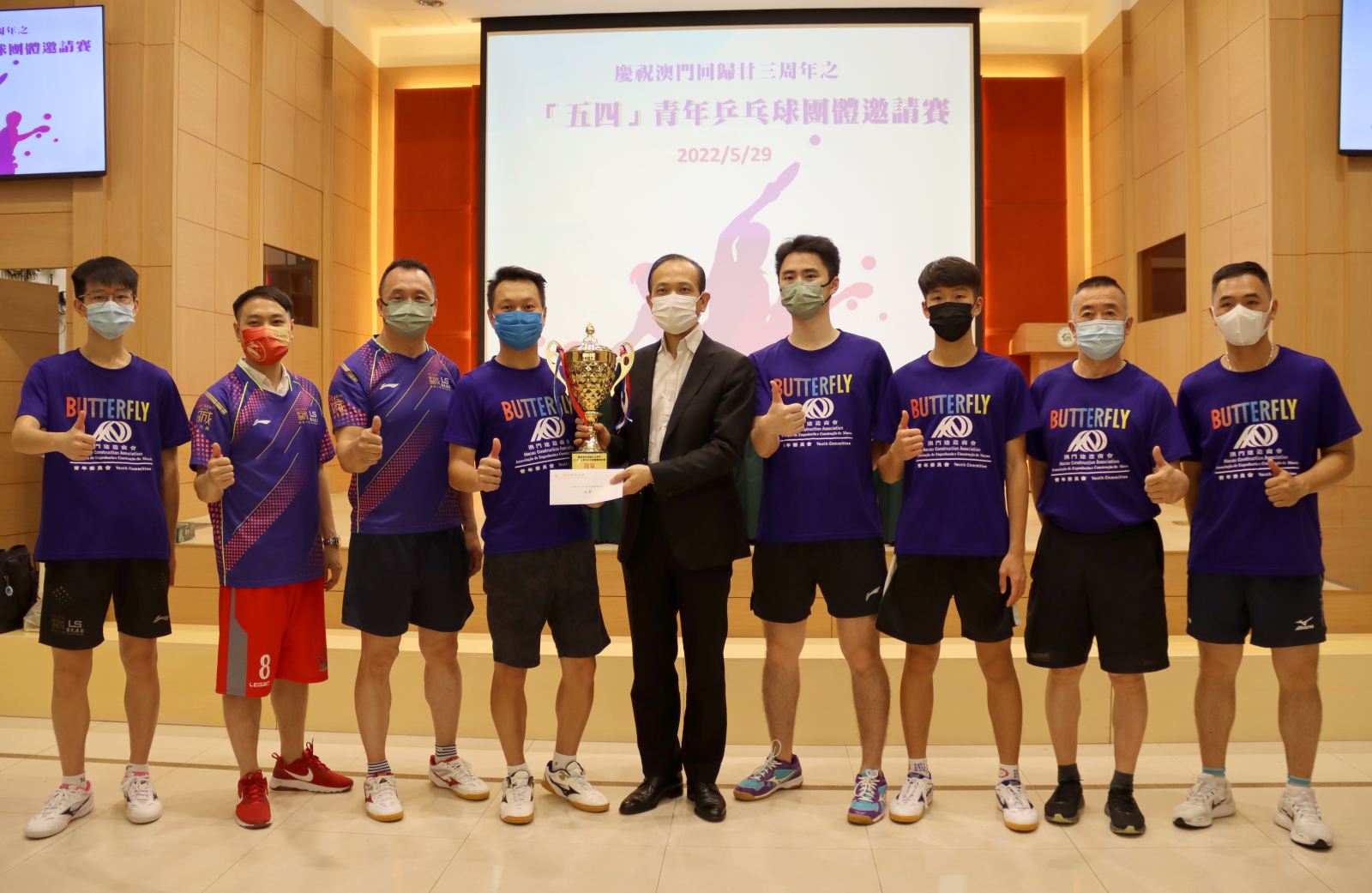 澳門(mén)僑界青年協(xié)會(huì)主辦的“慶祝澳門(mén)回歸廿三周年”之“五四”青年乒乓球團(tuán)體邀請(qǐng)賽,共邀請(qǐng)十二支隊(duì)伍參與,最後由澳門(mén)建造商會(huì)青年委員會(huì)衛(wèi)冕冠軍。