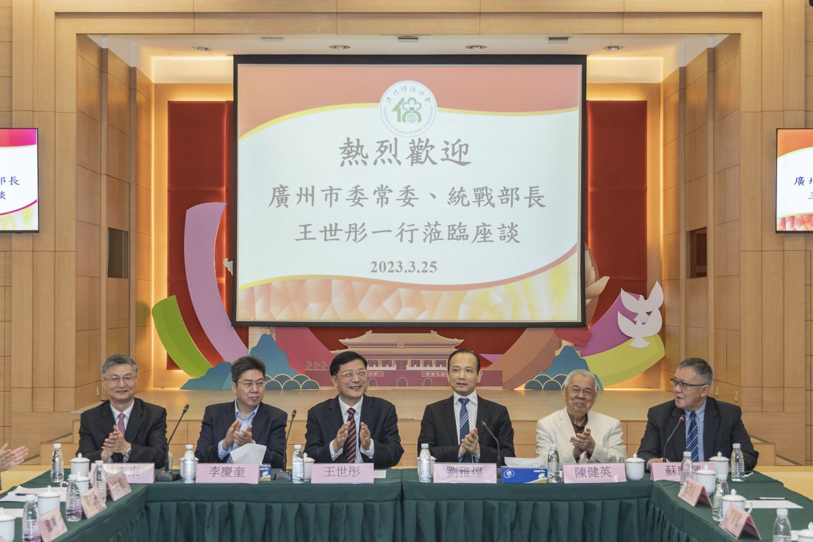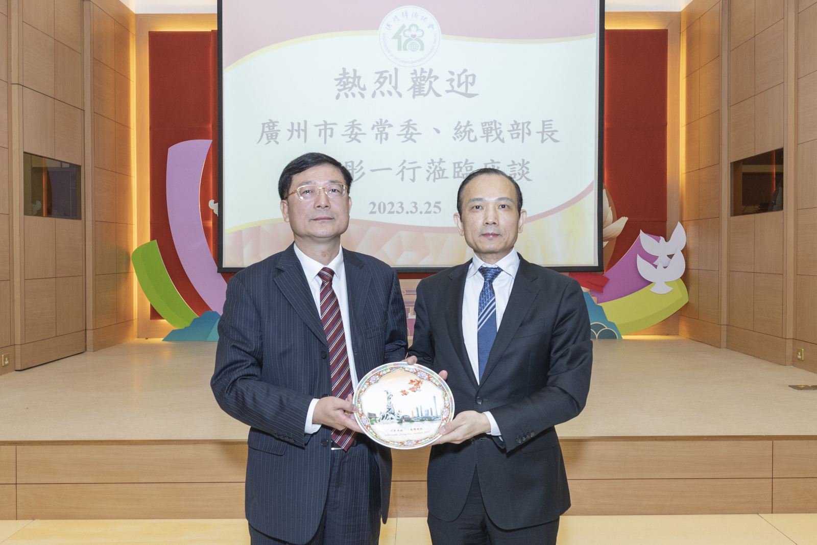 廣州市委常委、統(tǒng)戰(zhàn)部部長王世彤一行八人於3月25日上午拜訪澳門歸僑總會,獲會長劉雅煌、常務(wù)副會長陳健英等熱情接待。會議由副會長蘇慶輝主持。雙方就推動穗澳兩地經(jīng)貿(mào)合作及僑務(wù)工作等領(lǐng)域交換意見。