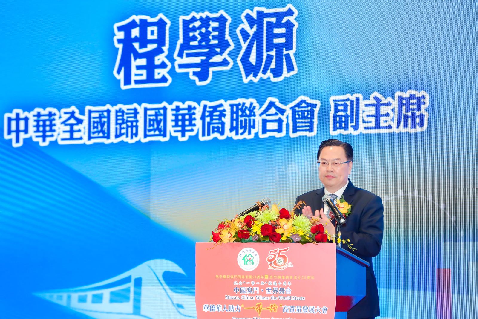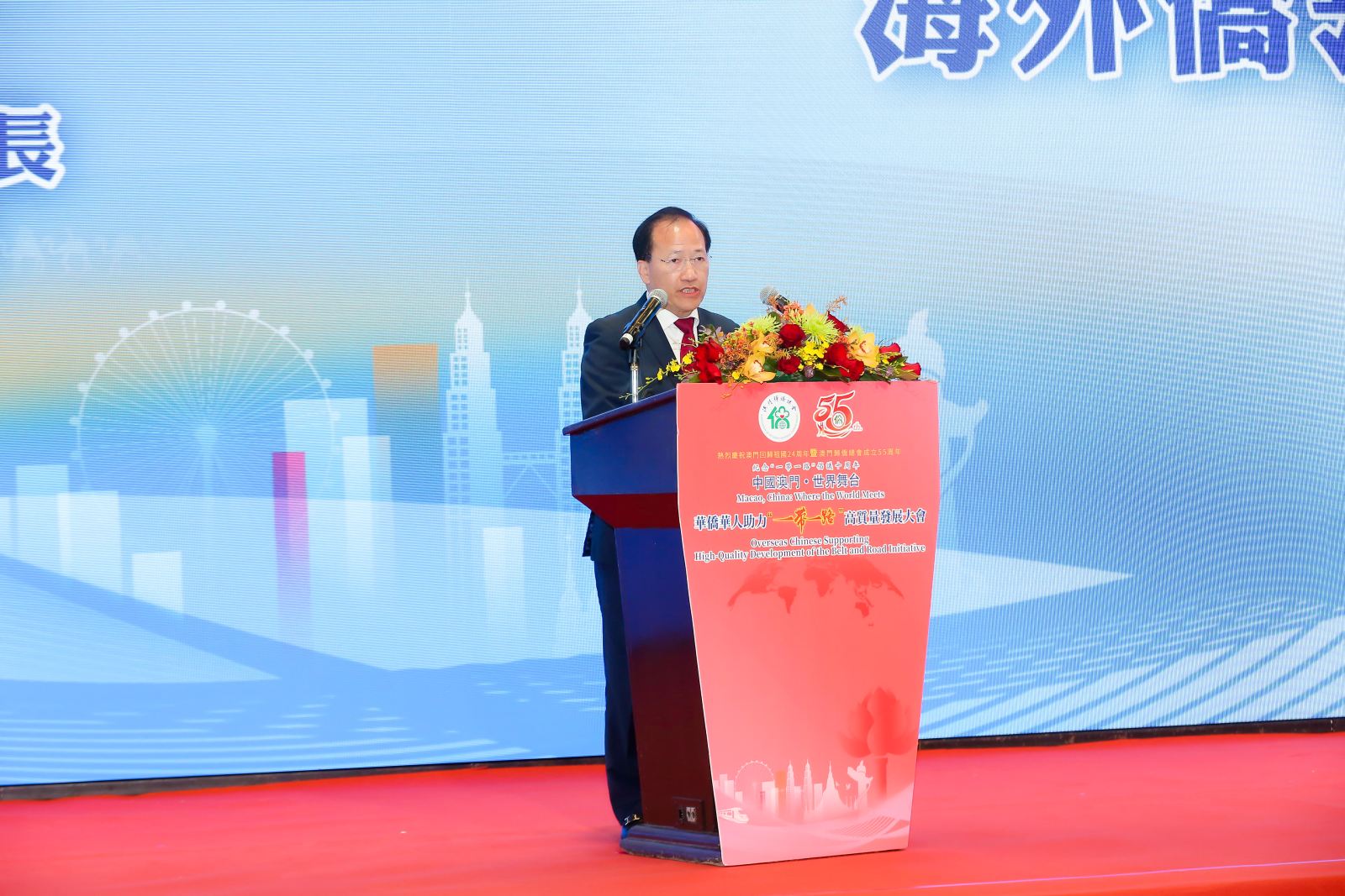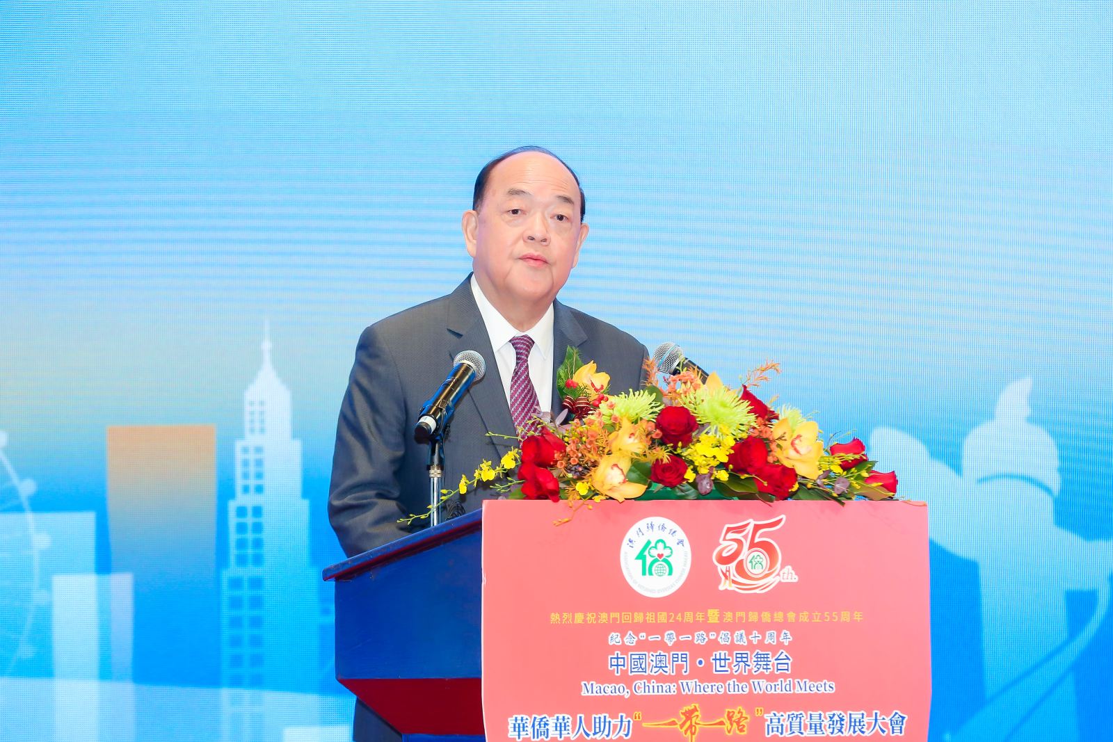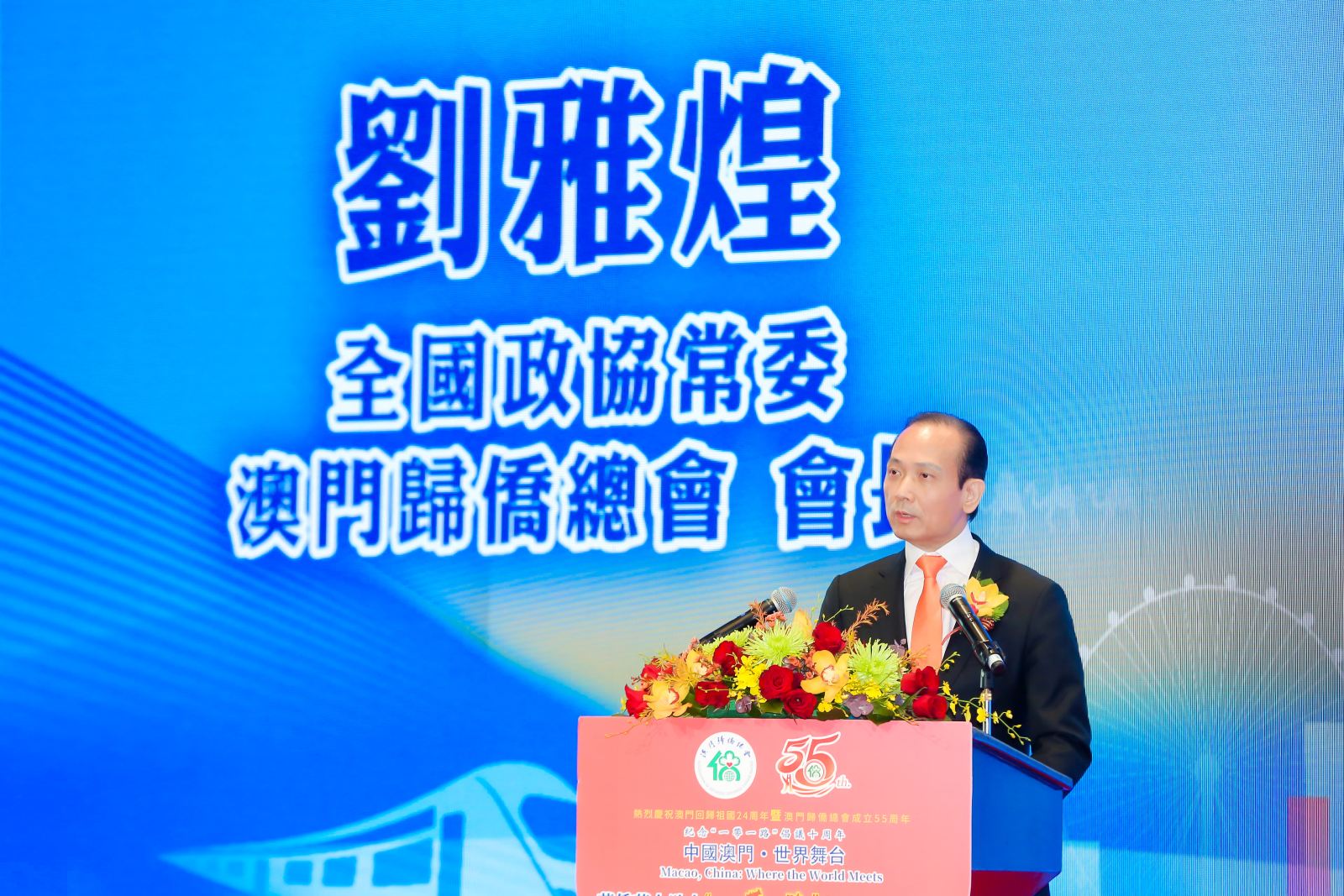 劉雅煌致辭時(shí)表示,共建“一帶一路”倡議十年來,已成為當(dāng)今世界深受歡迎的國際公共產(chǎn)品。中國高舉開放合作大旗,奏響了“軟硬聯(lián)通”的交響樂,解答了“時(shí)代之問”。從全球視角來看,“一帶一路”倡議一是延續(xù)了人類文明演進(jìn)的進(jìn)步邏輯;二是為共建國家提供了“五通”合作共贏的道路選項(xiàng);三是在推動(dòng)經(jīng)濟(jì)全球化進(jìn)程中取得了重大突破。從國家關(guān)係來看,中國和世界上181個(gè)國家建交並與600多個(gè)政黨保持往來,可以說中國的國際“朋友圈”遍佈全球。從華僑華人視角來看,共建“一帶一路”為廣大僑商參與社會(huì)主義現(xiàn)代化強(qiáng)國建設(shè)提供了前所未有的機(jī)遇。澳門歸僑總會(huì)經(jīng)過55年的發(fā)展,在歷屆會(huì)長的帶領(lǐng)下,積極發(fā)揮僑界作用及作出應(yīng)有貢獻(xiàn)。僑總未來將攜手各界做到四個(gè)“致力”:一是致力推動(dòng)廣大僑胞助力澳門“1+4”經(jīng)濟(jì)適度多元;二是致力促進(jìn)海外高端人才回流,推動(dòng)大灣區(qū)“新質(zhì)生產(chǎn)力”科技發(fā)展;三是致力推動(dòng)國家構(gòu)建雙迴圈發(fā)展新格局;四是致力推動(dòng)祖國統(tǒng)一大業(yè),團(tuán)結(jié)各界堅(jiān)決反對(duì)分裂勢(shì)力,抵禦各種危害國家和澳門安全的行徑。明年澳門將迎來回歸祖國25周年的高光時(shí)刻,熱情歡迎海內(nèi)外僑界的新老朋友屆時(shí)來澳,共同見證和書寫澳門“一國兩制”成功實(shí)踐新篇章。