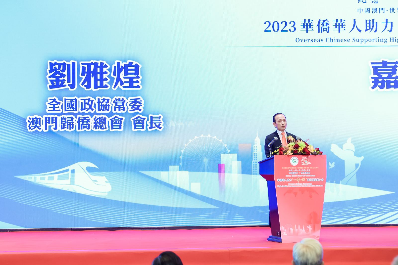 由中華全國(guó)歸國(guó)華僑聯(lián)合會(huì)、澳門歸僑總會(huì)主辦,中國(guó)僑聯(lián)青委會(huì)、澳門僑界青年協(xié)會(huì)承辦、澳門基金會(huì)資助的“2023僑青論壇”於11月27日在旅遊塔會(huì)展中心舉行,共邀請(qǐng)來(lái)自全球60個(gè)國(guó)家及地區(qū)海外華僑華人共襄盛會(huì)。中國(guó)僑聯(lián)副主席程學(xué)源,澳門歸僑總會(huì)會(huì)長(zhǎng)劉雅煌,永遠(yuǎn)會(huì)長(zhǎng)劉藝良,理事長(zhǎng)陳曉平、監(jiān)事長(zhǎng)王彬成,澳門僑界青年協(xié)會(huì)會(huì)長(zhǎng)梁兆基、理事長(zhǎng)梁俊傑等應(yīng)邀出席。