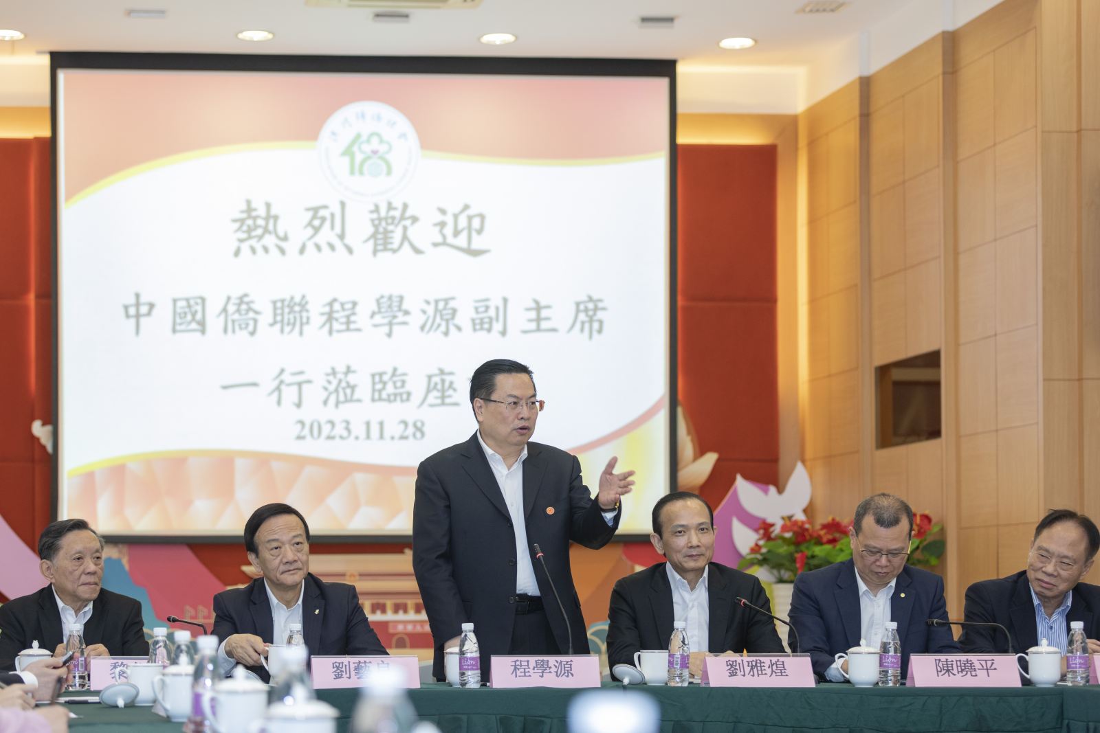 中國(guó)僑聯(lián)副主席程學(xué)源、聯(lián)絡(luò)部桑寶山等一行於11月28日拜訪澳門歸僑總會(huì),獲永遠(yuǎn)會(huì)長(zhǎng)黎振強(qiáng)、劉藝良、會(huì)長(zhǎng)劉雅煌、理事長(zhǎng)陳曉平、監(jiān)事長(zhǎng)王彬成等該會(huì)領(lǐng)導(dǎo)熱情接待。
