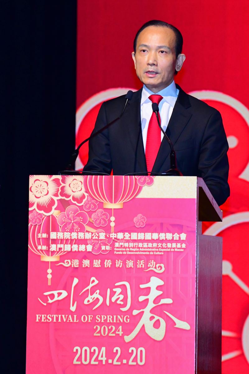 國(guó)務(wù)院僑務(wù)辦公室、中華全國(guó)歸僑聯(lián)會(huì)、澳門歸僑總會(huì)主辦,澳門文化發(fā)展基金贊助的二〇二四“四海同春”大型春節(jié)文藝匯演澳門站,2月19日至20日一連兩晚假文化中心綜合劇院舉行,邀請(qǐng)中國(guó)煤礦文工團(tuán),以及中國(guó)歌劇舞劇院、天津音樂學(xué)院等眾多國(guó)家一級(jí)演員,為澳門同胞帶來多個(gè)富含中華傳統(tǒng)文化的民族舞蹈歌曲演出,並送上春節(jié)祝福。