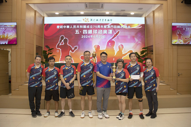 澳門僑界青年協(xié)會主辦的“慶祝中華人民共和國成立七十五周暨澳門回歸廿五周年”之“五四銀球迎奧運”青年乒乓球團體邀請賽,最後由僑界青年協(xié)會力壓協(xié)成黎氏乒乓球隊奪得冠軍。