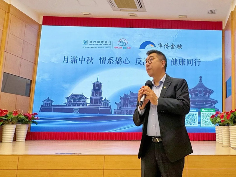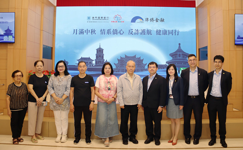 9月16日,澳門國際銀行與澳門歸僑總會攜手舉辦“月滿中秋,情系僑心,反詐護航,健康同行”主題活動。澳門歸僑總會名譽會長韓瑛、副會長黃瓊成、副會長廖麗瓊、副理事長王沖芬、副理事長胡惠芳、副監(jiān)事長李如秀等歸僑總會領導代表,澳門國際銀行私人銀行部主管何嘉龍、華僑金融部主管陳源元、零售業(yè)務管理部副主管林智雄、紅街市分行行長梁斯敏等出席活動。
