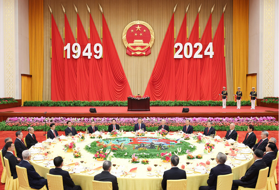 李強(qiáng)主持招待會(huì),趙樂(lè)際、王滬甯、蔡奇、丁薛祥、李希、韓正出席招待會(huì)。約3000名中外人士歡聚一堂,共慶新中國(guó)75周年華誕。