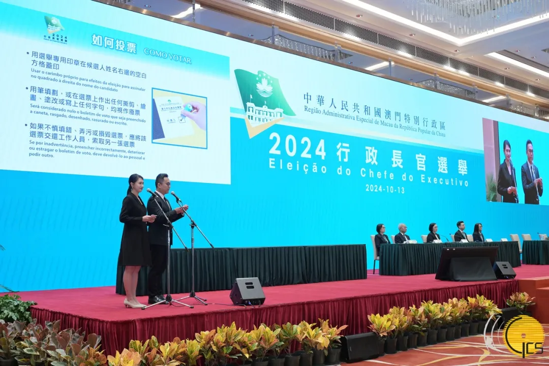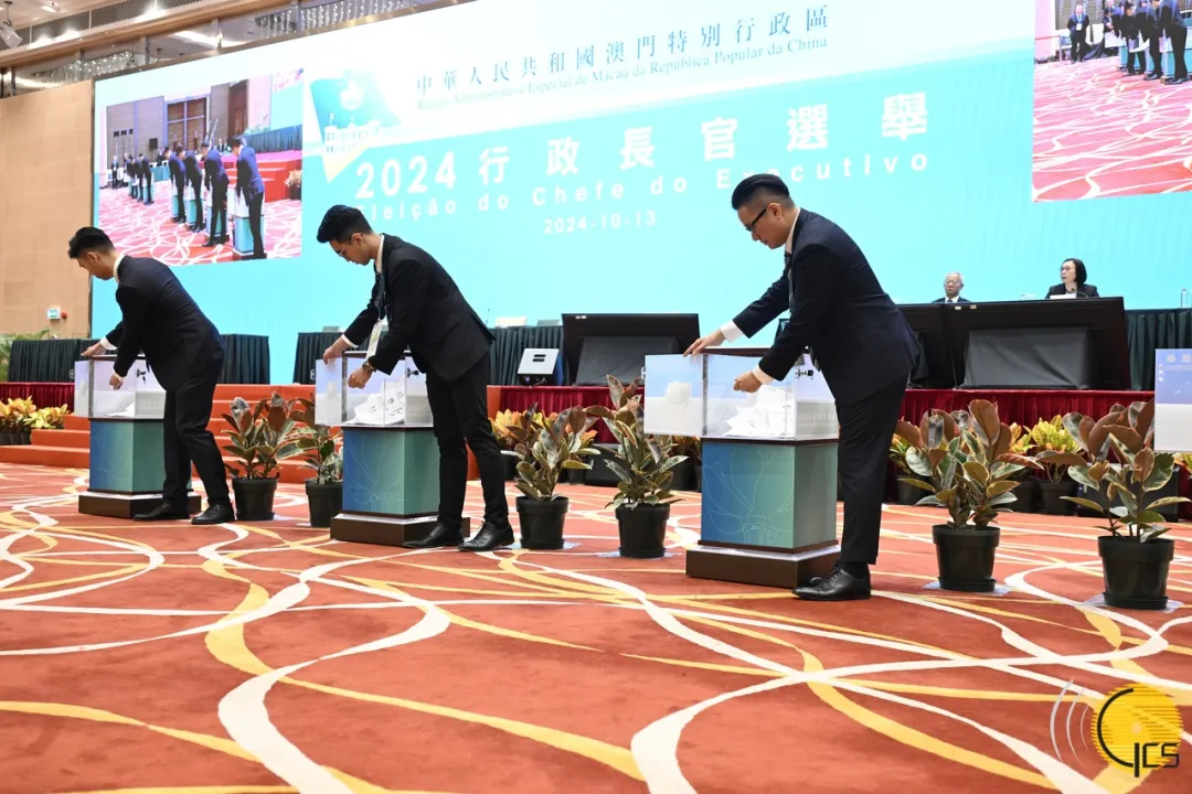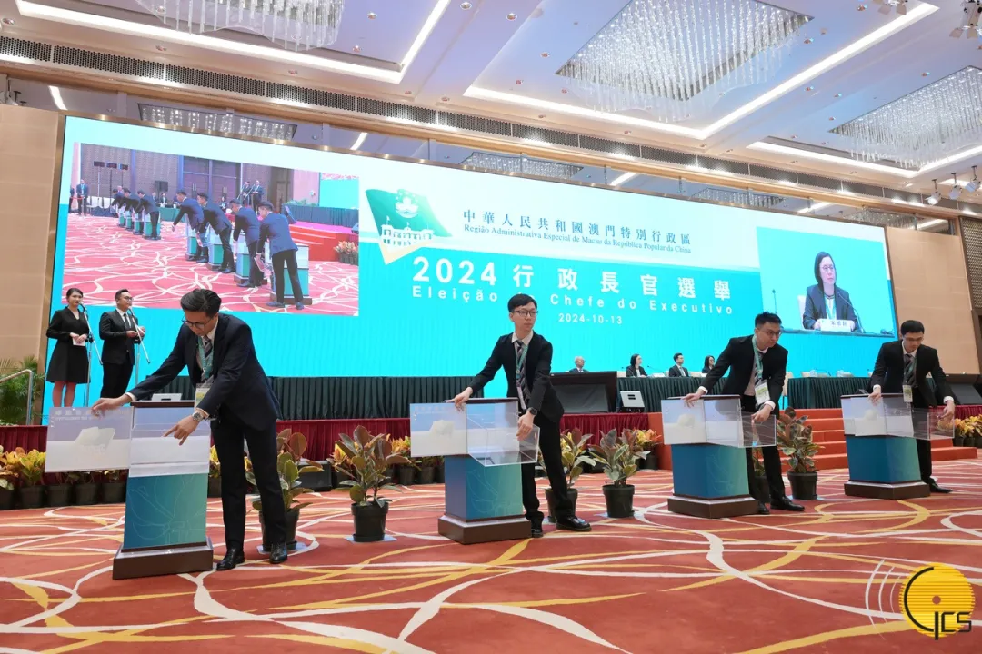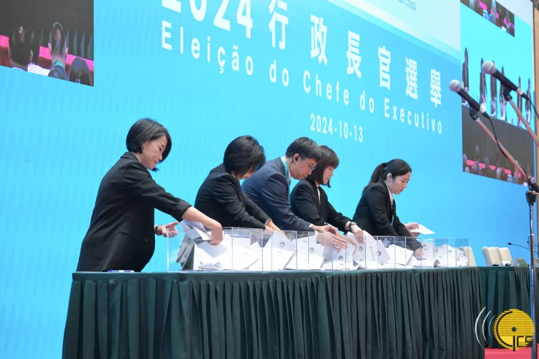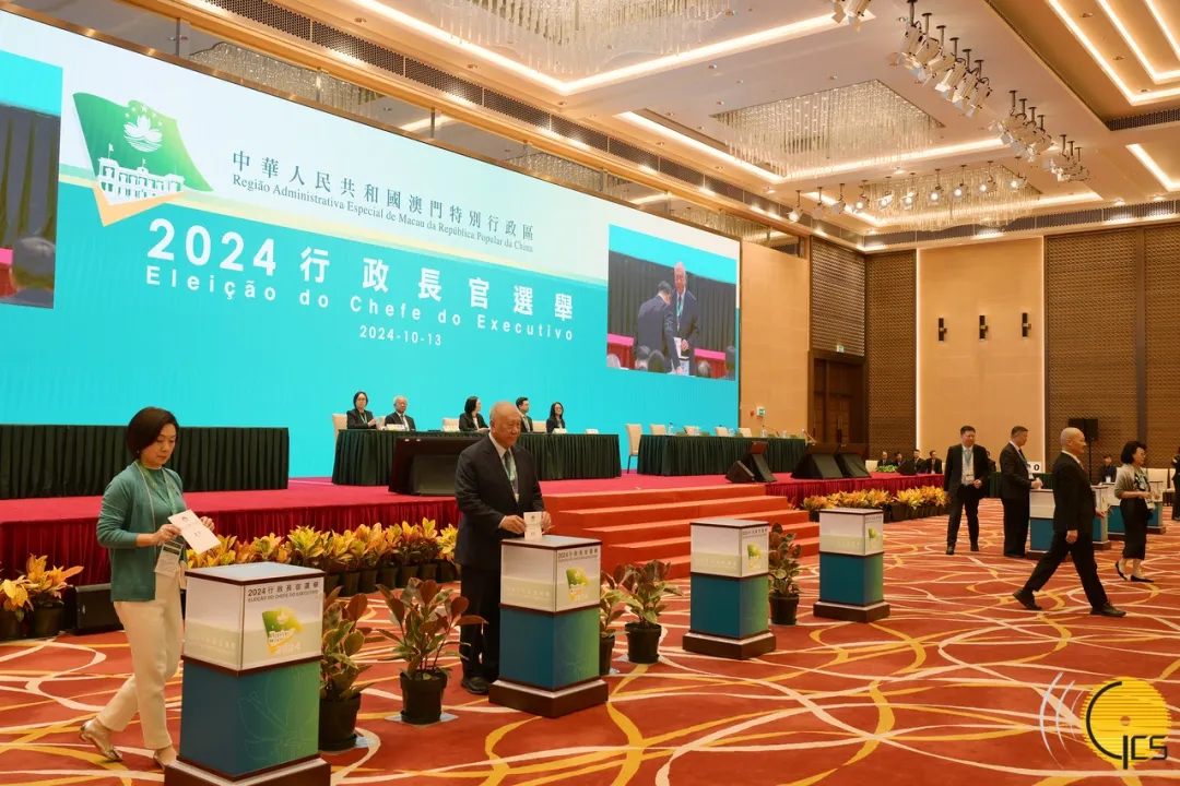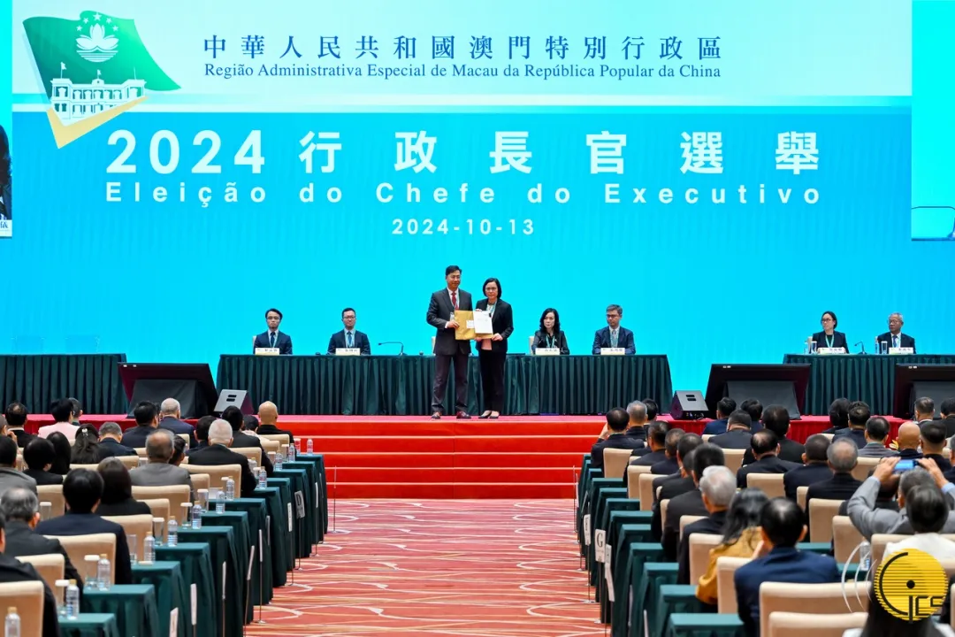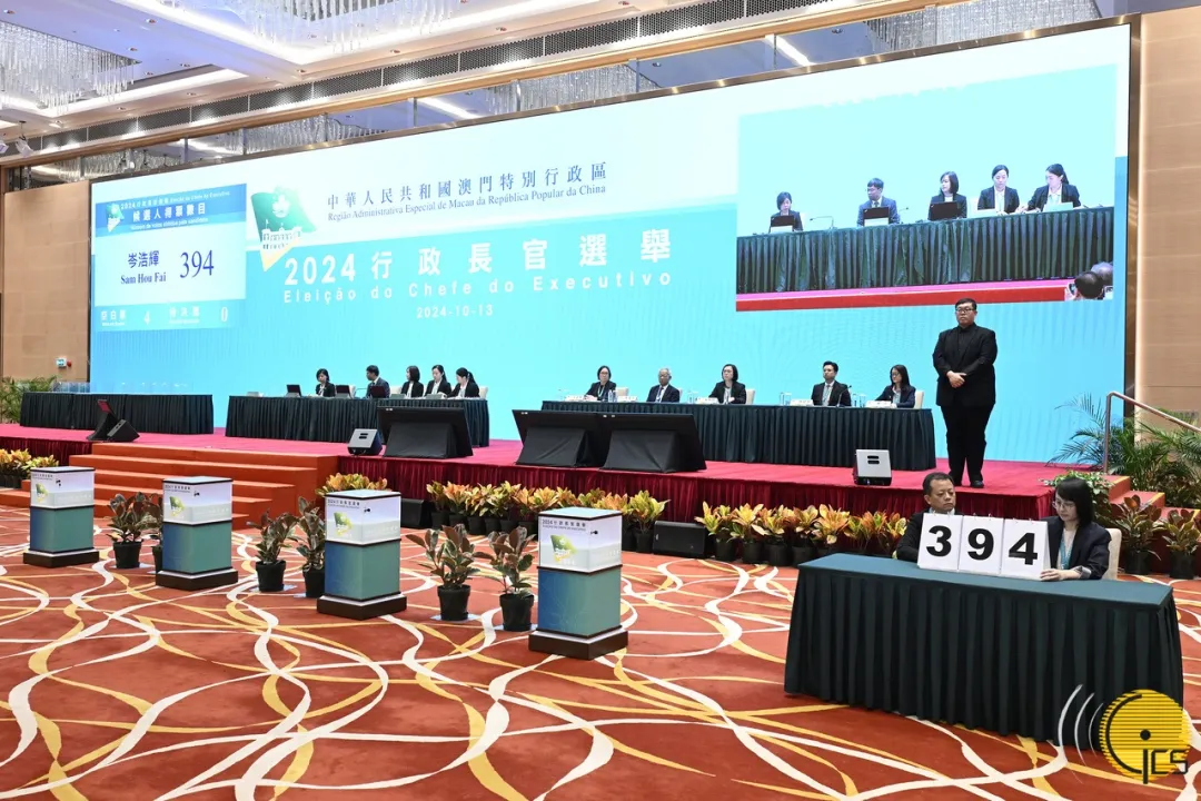 澳門特別行政區(qū)第六任行政長官選舉今(13)日舉行。岑浩輝當選成為第六任行政長官候任人,取得有 效票394張,得票率達98.99%。