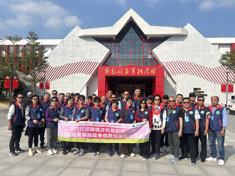 澳門歸僑總會、澳門印尼歸僑文化藝術聯(lián)誼會合辦、澳門基金會資助的2024年澳門僑界海南省萬寧興隆華僑農(nóng)場學習交流團。由澳門歸僑總會會長劉雅煌擔任名譽團長,澳門印尼歸僑文化藝術聯(lián)誼會會長林文建任團長,於12月19日一行30人赴海南省學習交流。