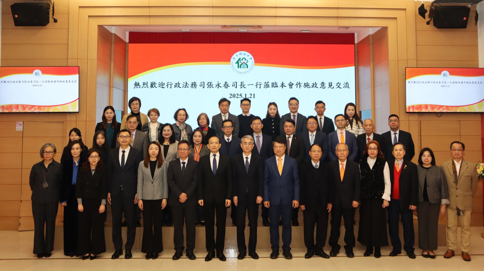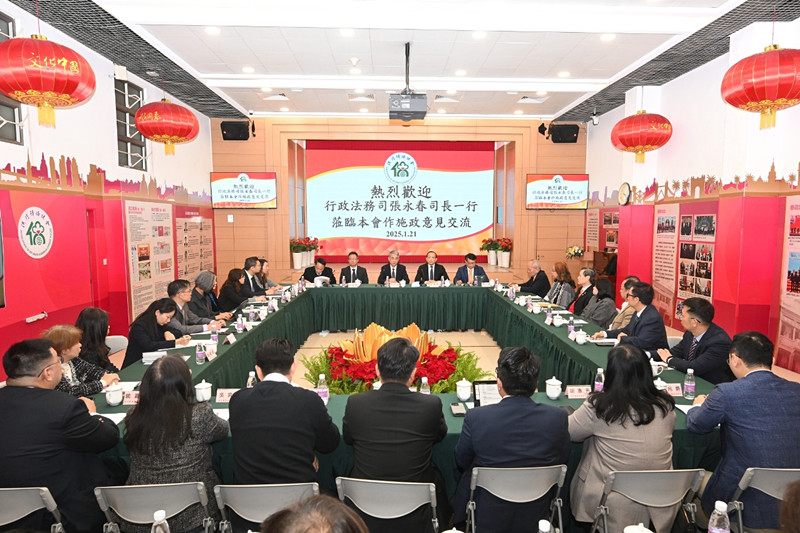 行政法務(wù)司司長(zhǎng)張永春一行於1月21日下午3時(shí)到訪澳門歸僑總會(huì)並進(jìn)行座談,聽取本會(huì)就編製行政法務(wù)範(fàn)疇本年度施政方針提出的意見和建議,獲會(huì)長(zhǎng)劉雅煌、理事長(zhǎng)畢志健、監(jiān)事長(zhǎng)王彬成等的熱情接待。