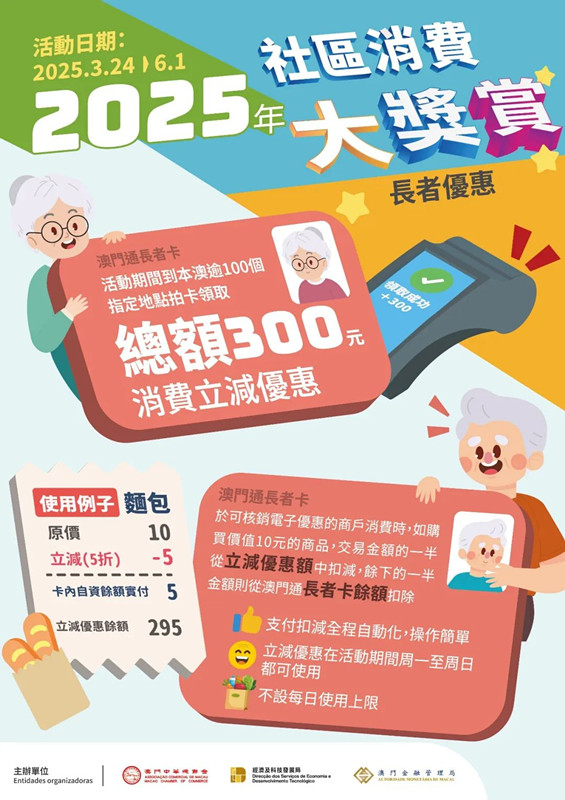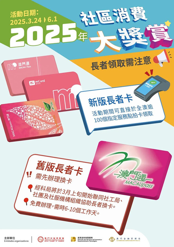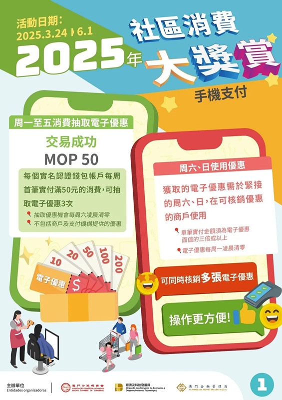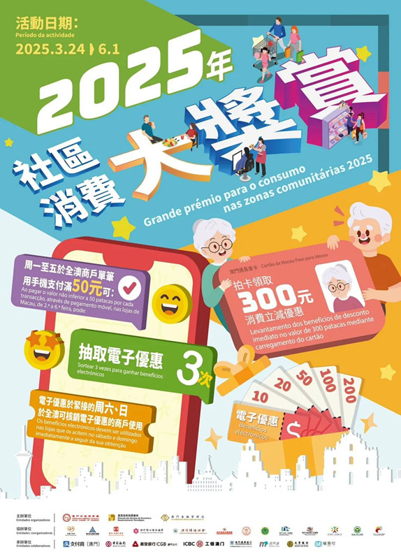 為帶動(dòng)本地消費(fèi)氛圍,促進(jìn)消費(fèi)市場(chǎng)的信心,進(jìn)一步改善民生區(qū)商戶經(jīng)營(yíng),特區(qū)政府與商會(huì)合作,於2025年3月24日至6月1日期間,舉辦為期10周的“2025年社區(qū)消費(fèi)大獎(jiǎng)賞”大型促消費(fèi)活動(dòng)。