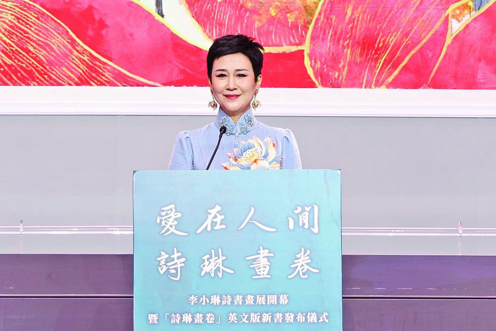 柯嵐致詞稱,李小琳自幼深受中華傳統(tǒng)文化薰陶,在傳承和弘揚民族傳統(tǒng)文化道路上,始終堅持初心。在全球化的今天,文化交流與融合越來越重要,發(fā)佈《詩琳畫卷》英文版可讓更多國際友人能領(lǐng)略到中華詩書畫藝術(shù)魅力。相信通過這次展覽,讓更多人感受到中華文化博大精深,激發(fā)大眾對傳統(tǒng)文化的熱愛與傳承之心。