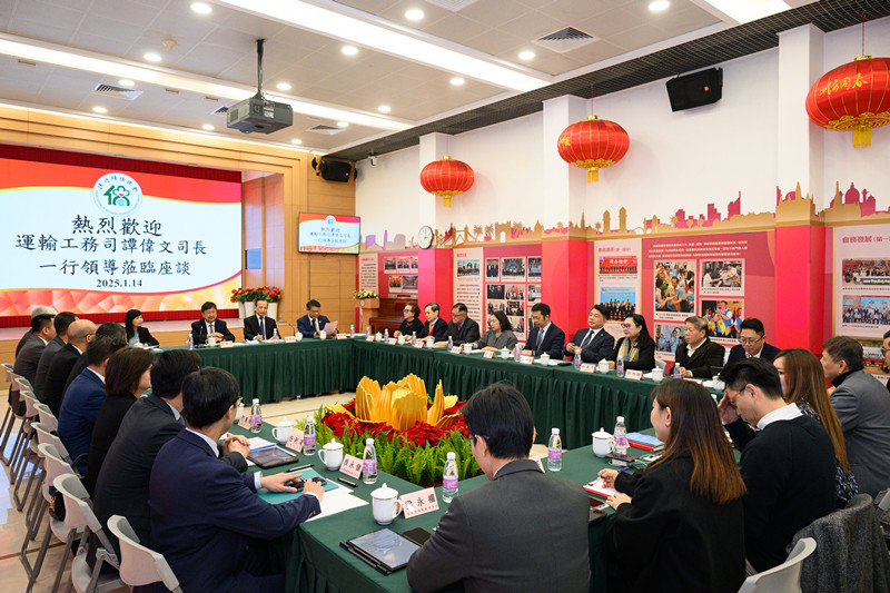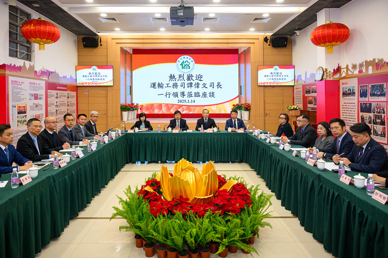 運(yùn)輸工務(wù)司司長(zhǎng)譚偉文一行於1月14日下午3時(shí)到訪澳門歸僑總會(huì)並舉行座談,聽(tīng)取本會(huì)就運(yùn)輸工務(wù)範(fàn)疇本年度施政工作提出的意見(jiàn)和建議,獲會(huì)長(zhǎng)劉雅煌、理事長(zhǎng)畢志健、監(jiān)事長(zhǎng)王彬成等的熱情接待。