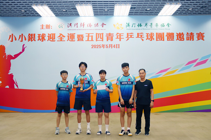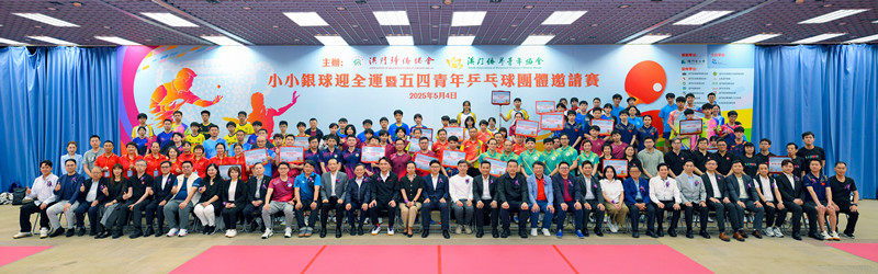 由澳門歸僑總會、澳門僑界青年協(xié)會聯(lián)合主辦的“小小銀球迎全運”暨“五四”青年乒乓球團體邀請賽於5月4日假澳門東亞運動會體育館圓滿舉行,本屆賽事吸引來自本澳各界共24支隊伍參賽,近二百名青年運動員踴躍參與,經(jīng)過激烈角逐誕生四強,最終灣青協(xié)“協(xié)成黎氏乒乓球隊”勇奪冠軍,澳門歸僑總會獲亞軍,澳門僑界青年協(xié)會獲季軍,澳門文員會奪得殿軍。