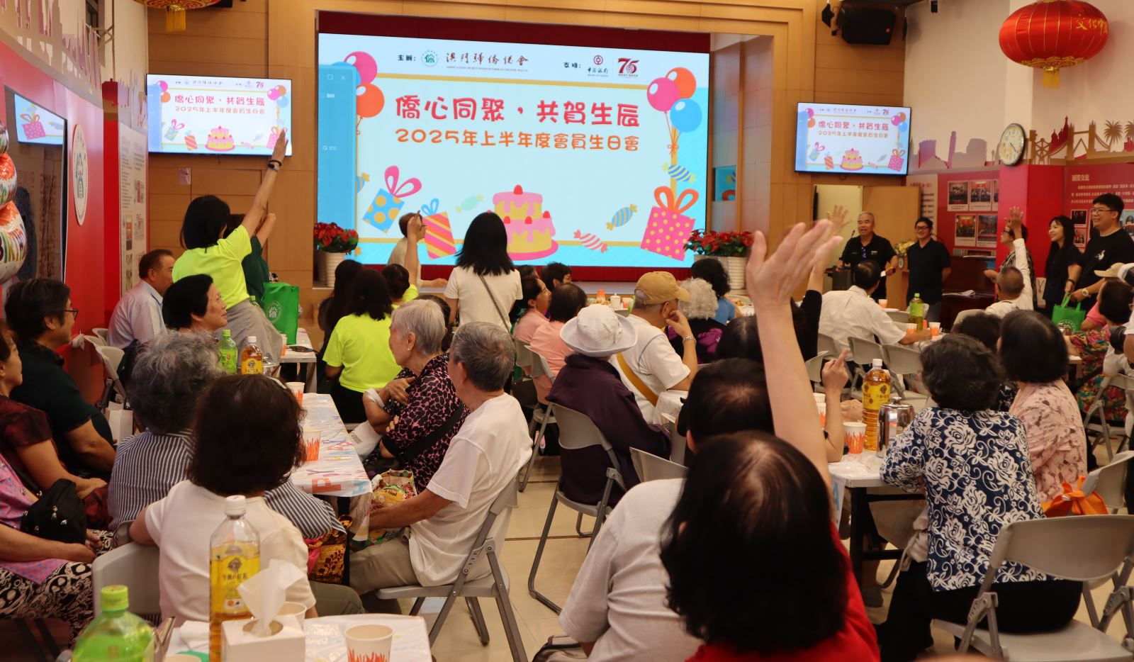 澳門歸僑總會6月28日於會址禮堂舉辦“2025年會員生日會”,僑總會長劉雅煌,支持機構(gòu)中國銀行澳門分行營業(yè)中心聯(lián)席總經(jīng)理顏奕恆,與近百位壽星會員歡聚一堂,共慶生辰。節(jié)目包括精彩歌舞表演、互動遊戲、禮品派發(fā),場面溫馨。