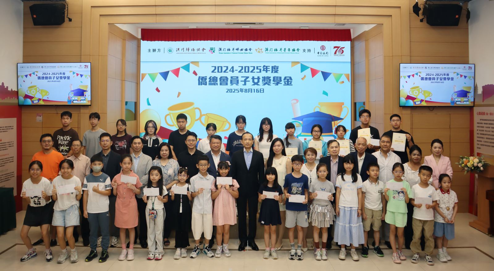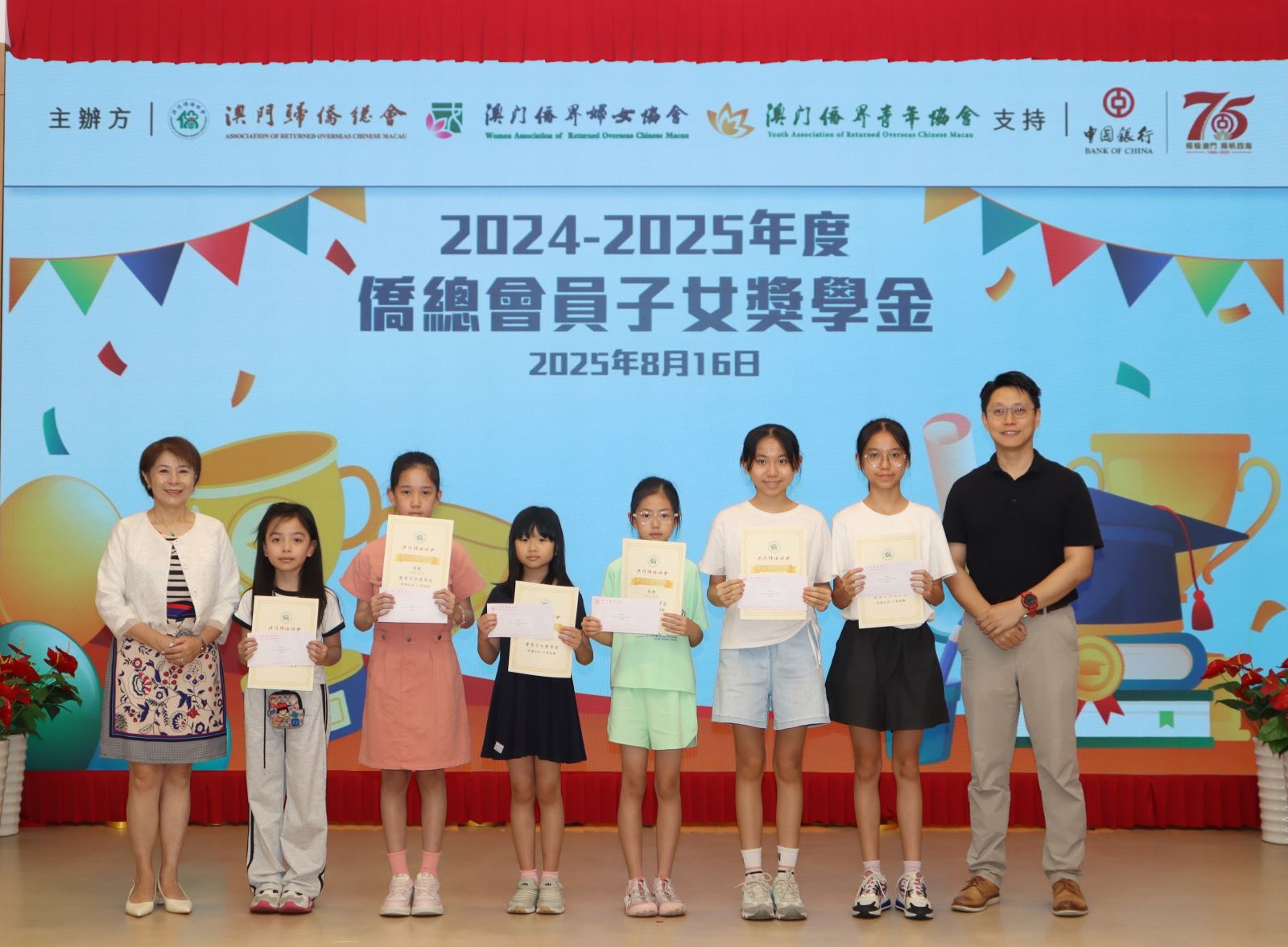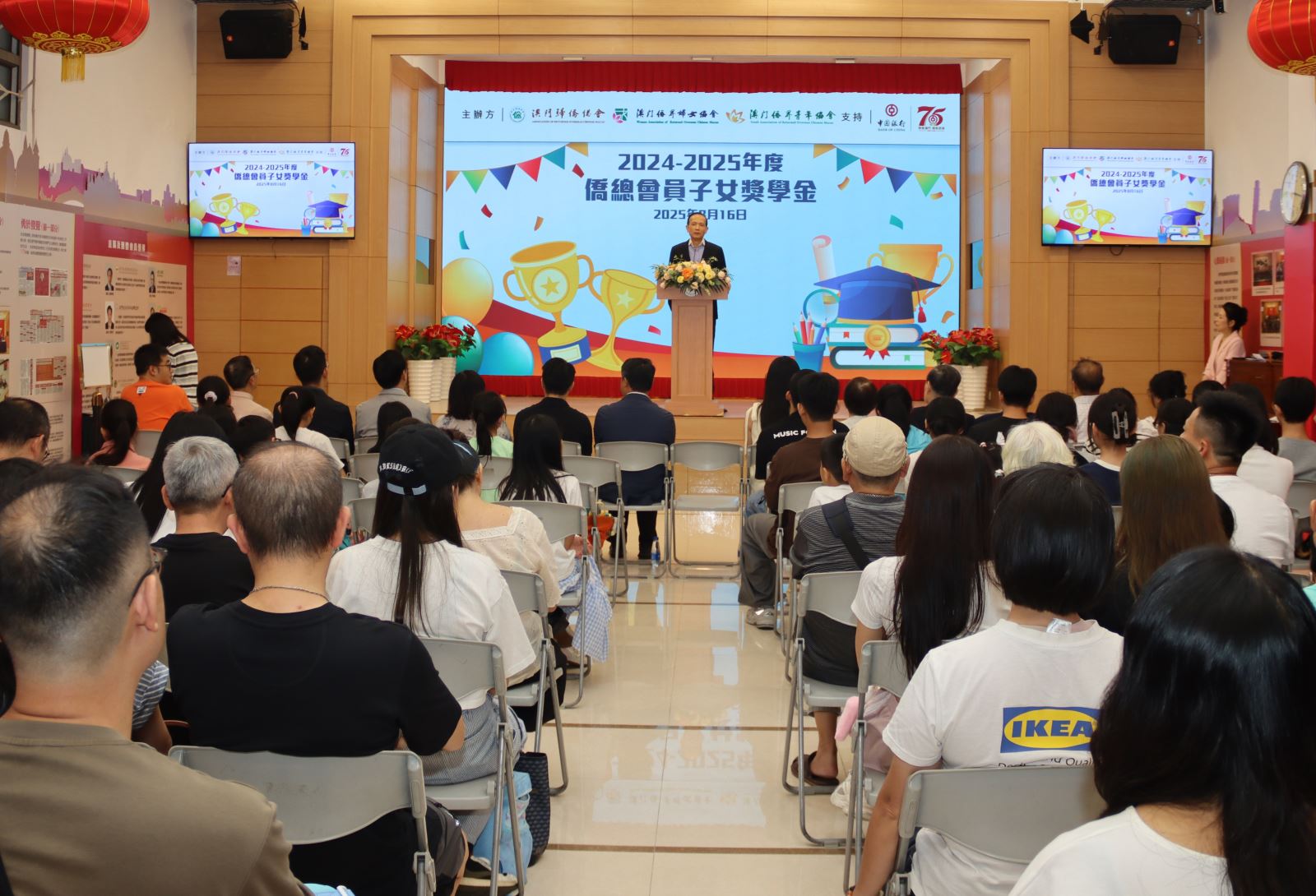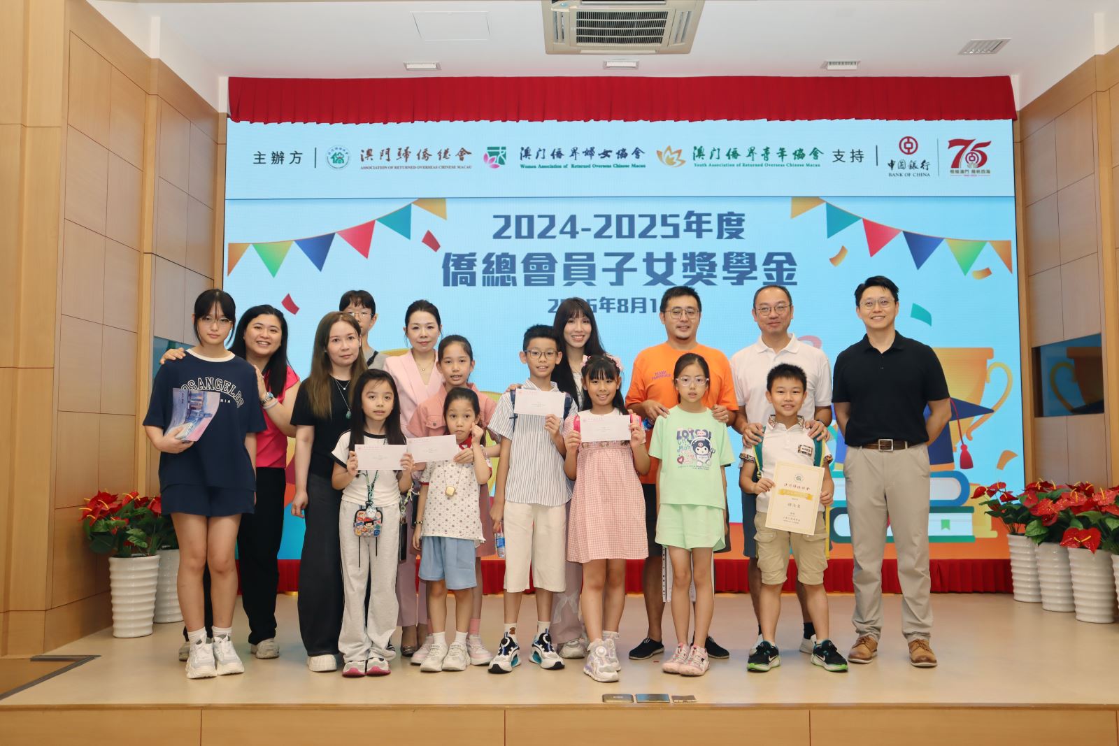 「2024-2025年度僑總會(huì)員子女獎(jiǎng)學(xué)金」頒獎(jiǎng)禮於8月16日在僑總禮堂舉行,主辦單位澳門(mén)歸僑總會(huì)長(zhǎng)劉雅煌、僑界婦女協(xié)會(huì)會(huì)長(zhǎng)鄧婉玲、僑界青年協(xié)會(huì)理事長(zhǎng)黎光豪,贊助機(jī)構(gòu)中國(guó)銀行澳門(mén)分行(俾利喇街支行)行長(zhǎng)黃一娜,僑總理事長(zhǎng)畢志健,副會(huì)長(zhǎng)陳和標(biāo)、廖麗瓊、張華、趙文炎、蔡志龍、梁鋼等出席,由僑總理事張蓓主持。