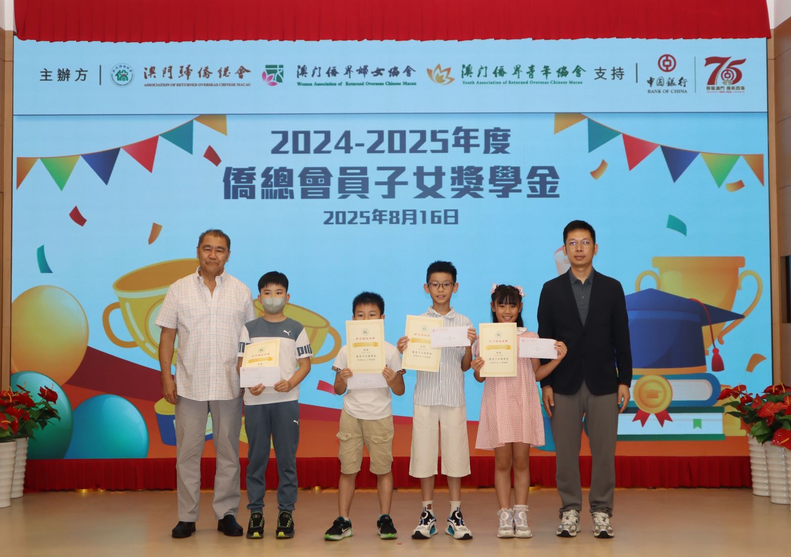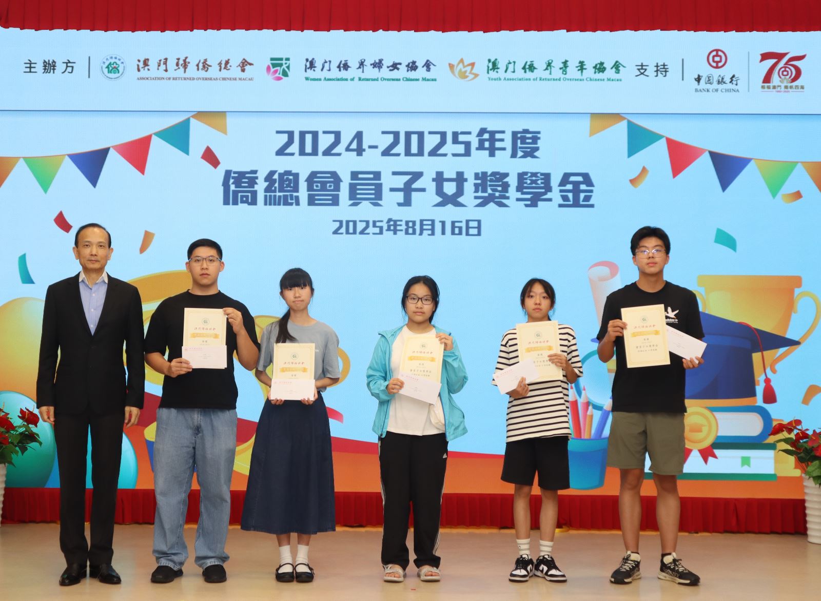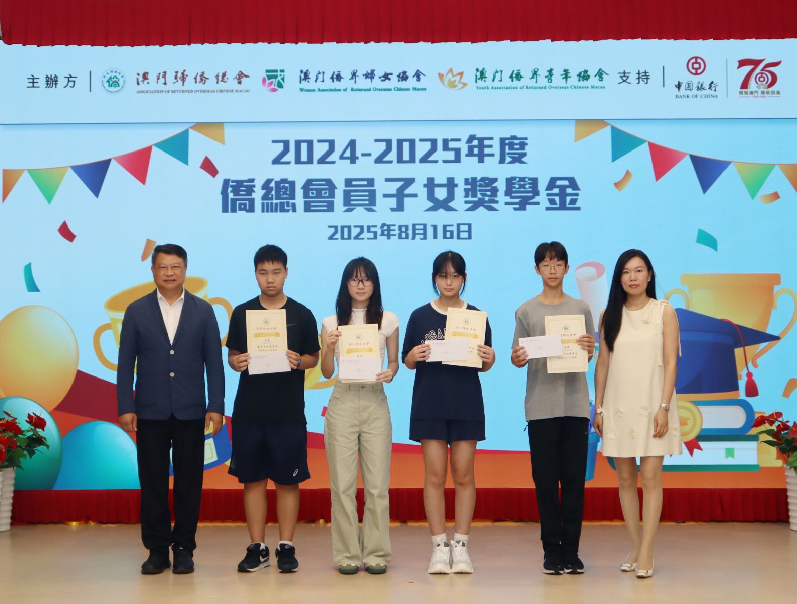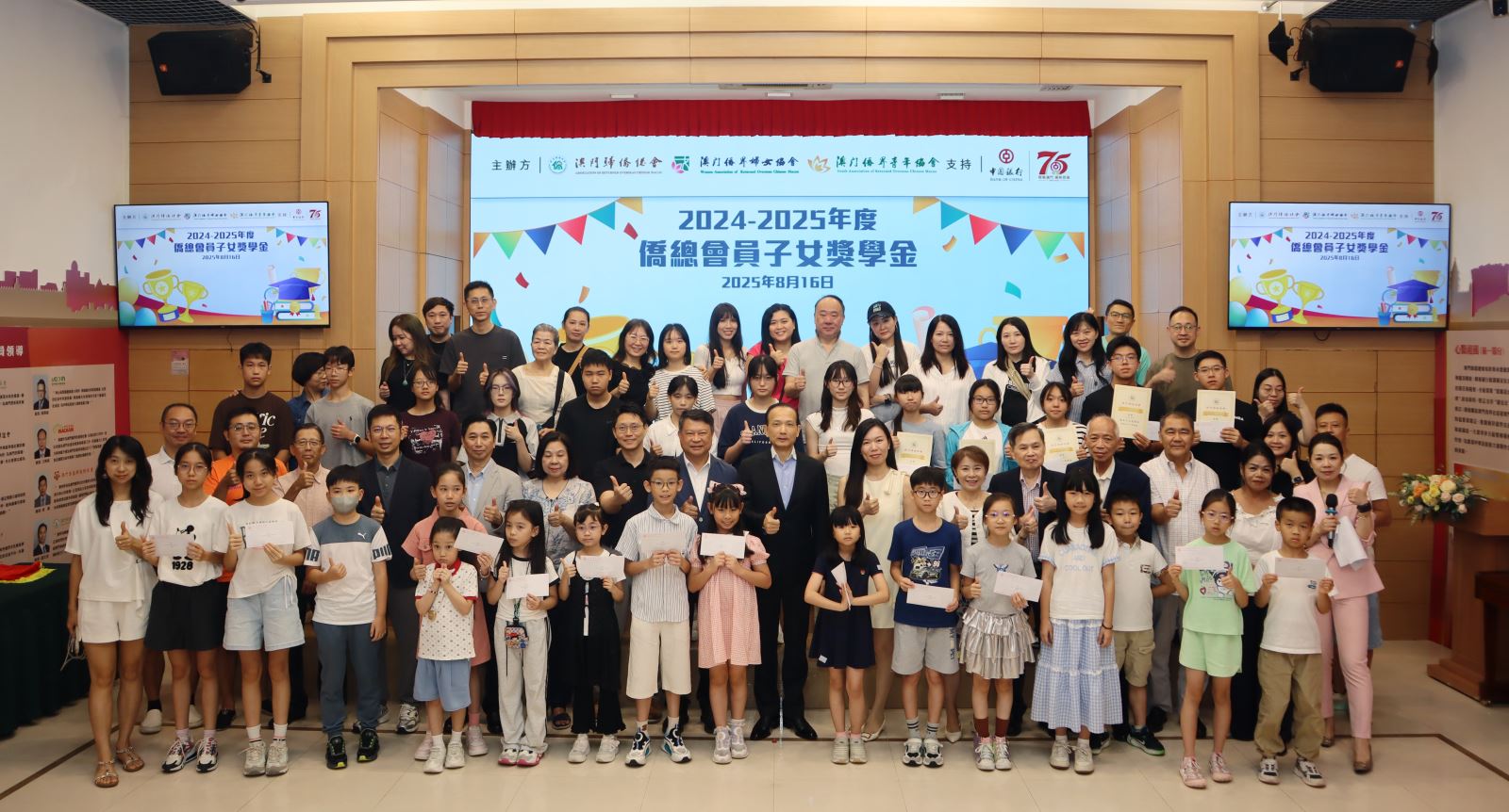「2024-2025年度僑總會(huì)員子女獎(jiǎng)學(xué)金」頒獎(jiǎng)禮於8月16日在僑總禮堂舉行,主辦單位澳門(mén)歸僑總會(huì)長(zhǎng)劉雅煌、僑界婦女協(xié)會(huì)會(huì)長(zhǎng)鄧婉玲、僑界青年協(xié)會(huì)理事長(zhǎng)黎光豪,贊助機(jī)構(gòu)中國(guó)銀行澳門(mén)分行(俾利喇街支行)行長(zhǎng)黃一娜,僑總理事長(zhǎng)畢志健,副會(huì)長(zhǎng)陳和標(biāo)、廖麗瓊、張華、趙文炎、蔡志龍、梁鋼等出席,由僑總理事張蓓主持。