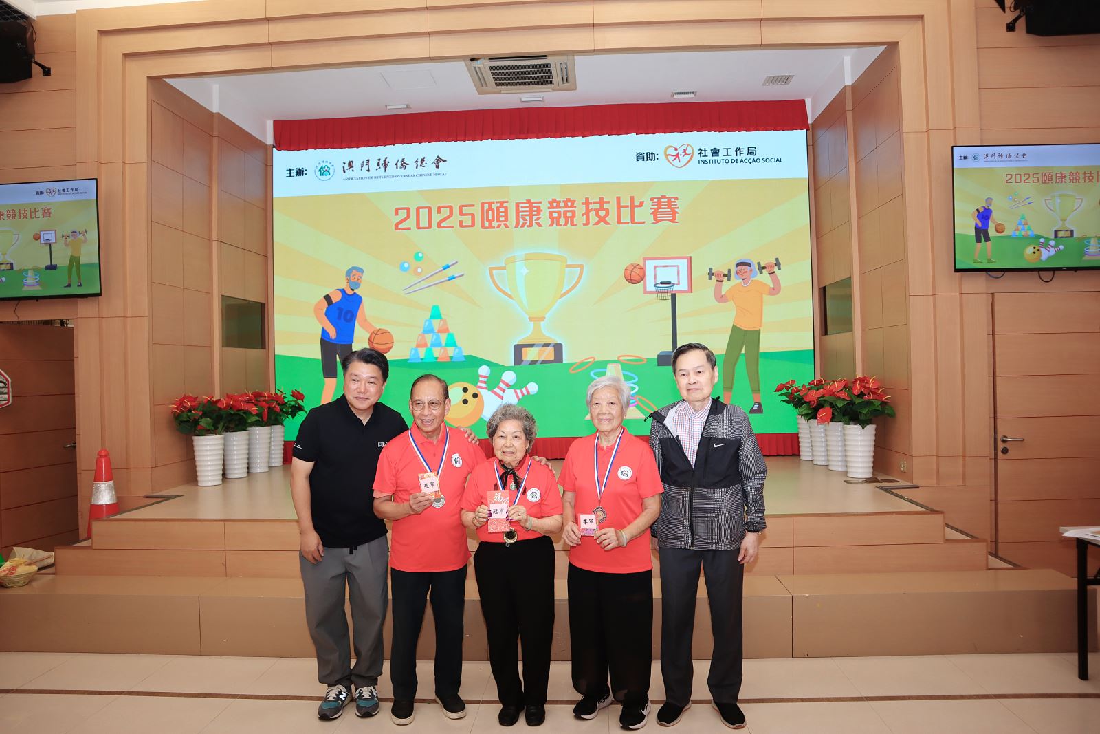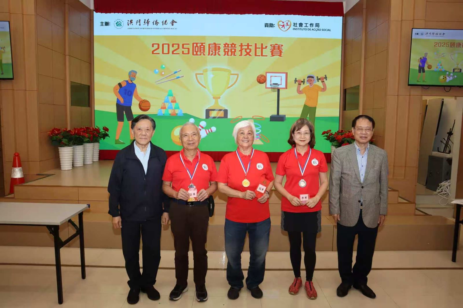 由澳門歸僑總會主辦、社會工作局資助的“頤康競技比賽”頒獎儀式,於8月30日下午在僑總禮堂圓滿舉行。近八十位長者參與了五項賽事的角逐。澳門歸僑總會永遠(yuǎn)會長黎振強,監(jiān)事長王彬成,名譽會長韓瑛,常務(wù)副會長邱漢榮,副會長梁美滿、陳和標(biāo)、蘇慶輝、王國蓉,常務(wù)副理事長梁兆基等出席儀式,為各項賽事的冠亞季軍頒獎,現(xiàn)場氣氛熱烈。