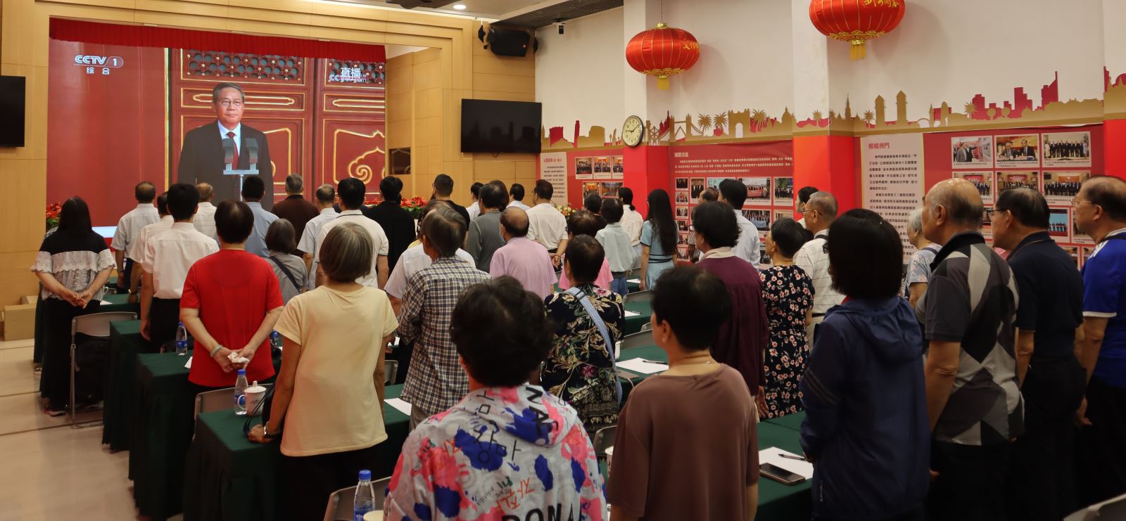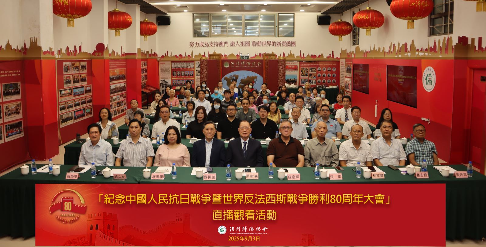 為紀(jì)念中國人民抗日戰(zhàn)爭暨世界反法西斯戰(zhàn)爭勝利八十周年,澳門歸僑總會於九月三日上午九時在僑總禮堂組織逾七十名理監(jiān)事及團體會會員觀看在北京舉行的紀(jì)念中國人民抗日戰(zhàn)爭暨世界反法西斯戰(zhàn)爭勝利八十周年大會現(xiàn)場直播,共同見證國家莊嚴(yán)時刻,現(xiàn)場氣氛莊重。