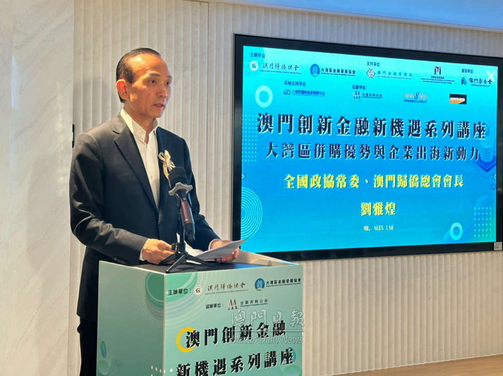 由澳門歸僑總會與大灣區(qū)金融發(fā)展協(xié)會聯(lián)合主辦的“澳門創(chuàng)新金融新機遇系列講座——大灣區(qū)併購優(yōu)勢與企業(yè)出海新動力”專題講座,9月16日下午三時假南通商業(yè)大廈19樓舉行。講座主要探討如何在金融前沿領域大膽創(chuàng)新,一同摸索適合澳門特點的發(fā)展路徑。