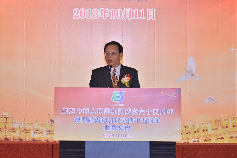 今天,澳門歸僑總會隆重舉行成立45周年慶典,我們非常高興能夠應邀出席。首先,受裘援平主任的委托,我謹代表國務院僑務辦公室和中國海外交流協(xié)會,向澳門歸僑總會表示熱烈祝賀並向在座各位朋友以及澳門僑界人士致以誠摯的問候和良好的祝願!