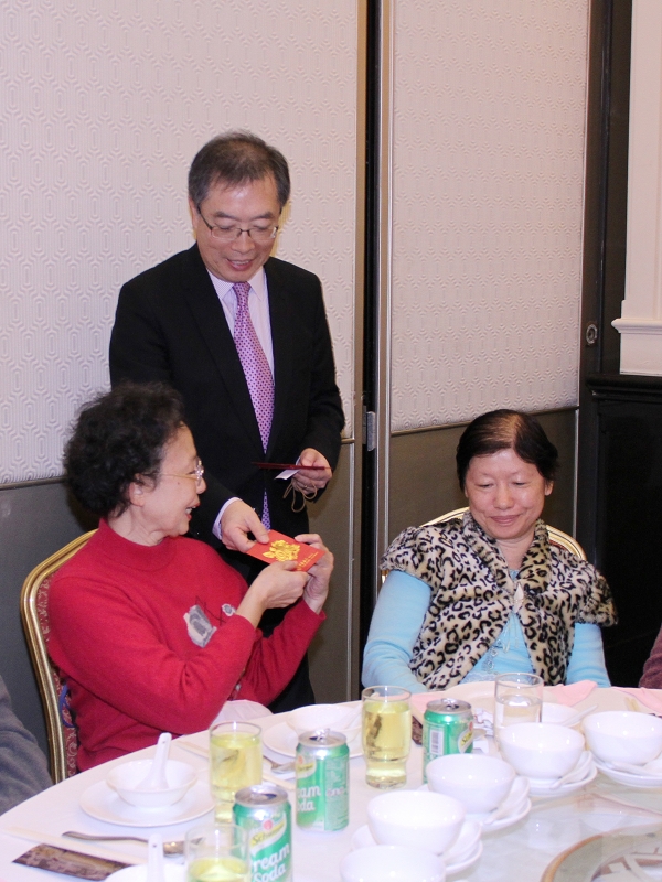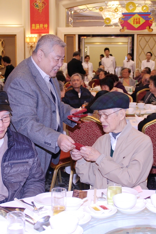 聯(lián)歡活動在萬豪軒酒家舉行,副理事長梁美滿主持了活動,黎振強(qiáng)、劉藝良、梁仲虯、盧學(xué)鋒、康寧英、邱漢榮、陳健英、許國璇、梁寳卿、謝思訓(xùn)、陳振豪、梁美滿、王沖芬、廖麗瓊、邢榮發(fā)、張華、韓瑛、胡燕群等30名僑總負(fù)責(zé)人出席了活動。席間向在座最高壽的102嵗黃曼峯老先生及兩百多位60嵗以上長者派發(fā)利市,向長期支持僑總會務(wù)的長者表達(dá)敬意和新春祝福。