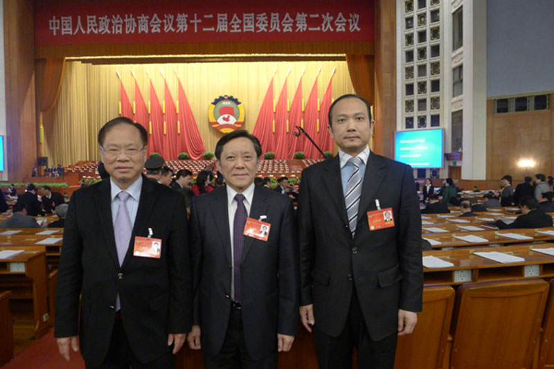 劉雅煌(右)、黎振強(中)、王彬成聯合提案,建議在澳門建立“全球華商資源交易所”。