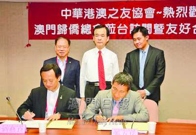 為進(jìn)一步加強(qiáng)臺(tái)、澳兩地的全方位交流合作,共同推進(jìn)兩岸四地的和平共榮,經(jīng)共同商議,協(xié)會(huì)與澳門(mén)歸僑總會(huì)就雙方建立交流與合作機(jī)制達(dá)成共識(shí),由劉藝良與張五岳代表簽署友好合作協(xié)議書(shū)。協(xié)議書(shū)內(nèi)容主要包括雙方組織代表團(tuán)定期互訪;加強(qiáng)彼此會(huì)務(wù)主管、理監(jiān)事及秘書(shū)處人員交流;針對(duì)華人世界共同關(guān)注之議題,定期舉辦交流或座談會(huì)議;聯(lián)合宣傳機(jī)制;互設(shè)聯(lián)絡(luò)窗口等。