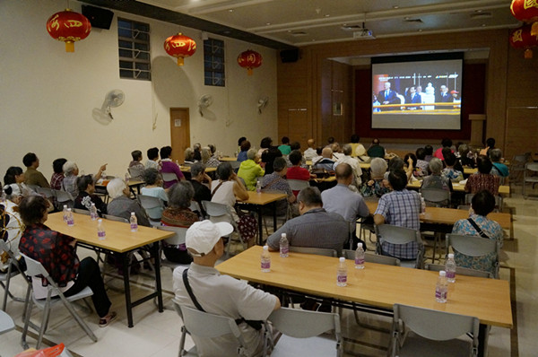 紀(jì)念抗戰(zhàn)勝利七十周年大閱兵9月3日在北京隆重舉行,僑總特別組織會(huì)員一同觀看電視直播,見證重要的歷史時(shí)刻。觀看期間,不少會(huì)員心情亢奮,時(shí)而配合歌唱國(guó)歌與軍歌,時(shí)而歡呼拍掌,猶如親歷其境。大家都稱觀看大閱兵後,難得一睹我國(guó)龐大的軍備陣容,感受到國(guó)家強(qiáng)盛與繁榮的一面,倍感自豪,會(huì)將抗戰(zhàn)史一代 一代傳承下去。