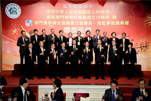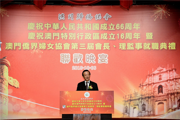 澳門歸僑總會10月6日舉辦慶祝國慶六十六周年、特區(qū)成立十六周年暨澳門僑界婦女協會第三屆會長、理監(jiān)事就職典禮,與逾七百名會員和理監(jiān)事歡度佳節(jié)。會長劉藝良勉勵會員要把握“僑“的特點和優(yōu)勢,加強與海內外僑界社團溝通聯絡,為特區(qū)發(fā)展添磚加瓦。