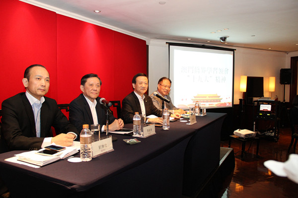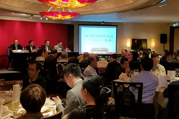 僑總11月3日晚舉行學(xué)習(xí)領(lǐng)會中共十九大精神交流會,兼任澳區(qū)全國人大代表的會長劉藝良,以及兼任澳區(qū)全國政協(xié)委員的永遠(yuǎn)會長黎振強(qiáng)、理事長王彬成、監(jiān)事長劉雅煌先後暢談感受。表示,十九大顯示中共領(lǐng)導(dǎo)的中國面向新時代的政治宣言、行動綱領(lǐng),並希望澳門僑界按“承擔(dān)中華民族復(fù)興責(zé)任,分享祖國繁榮富強(qiáng)榮光”的要求,認(rèn)真學(xué)習(xí),深刻領(lǐng)會十九大精神。