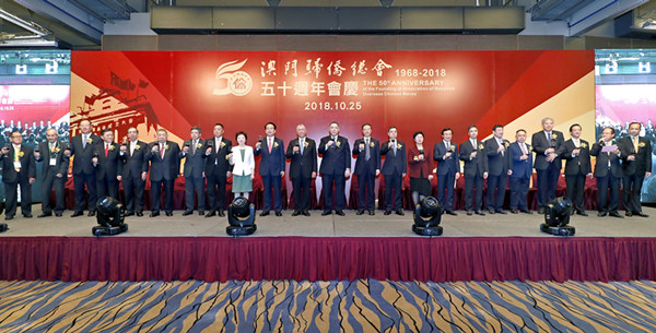 澳門歸僑總會成立五十周年慶祝酒會10月25日舉行,行政長官崔世安丶全國政協(xié)副主席何厚鏵,海內(nèi)外僑界丶各國使節(jié)以及澳門各界嘉賓到賀。崔世安肯定僑總成立以來的努力和貢獻(xiàn)。會長劉藝良表示,僑總今後將不忘初心,再接再厲,繼續(xù)團(tuán)結(jié)澳門十萬僑衆(zhòng),再譜僑務(wù)工作新篇章。