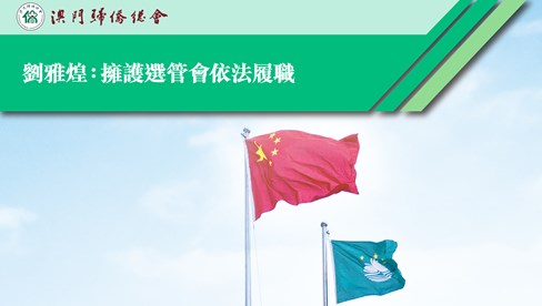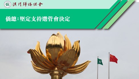 澳門歸僑總會(huì)表示,堅(jiān)定支持選管會(huì)依法執(zhí)行選舉資格審查的有關(guān)決定,為特區(qū)政權(quán)設(shè)置安全閥,確?!耙粐鴥芍啤笔聵I(yè)行穩(wěn)致遠(yuǎn)。