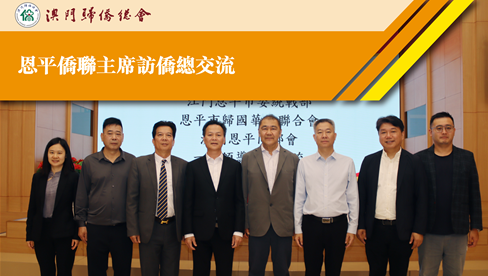 為進(jìn)一步加強(qiáng)恩平市與澳門的僑務(wù)交流與合作,江門市僑聯(lián)兼職副主席、恩平市僑聯(lián)主席李小聰一行於4月26日上午到訪澳門歸僑總會(huì),獲僑總副會(huì)長(zhǎng)蔡志龍、常務(wù)副理事長(zhǎng)梁兆基等的熱烈歡迎和接待。