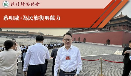 紀(jì)念中國人民抗日戰(zhàn)爭暨世界反法西斯戰(zhàn)爭勝利80周年大會昨日在北京天安門廣場舉行,全國政協(xié)澳區(qū)委員蔡明威觀禮後表示,能在天安門城樓親歷盛會,心情激動,深感榮耀。