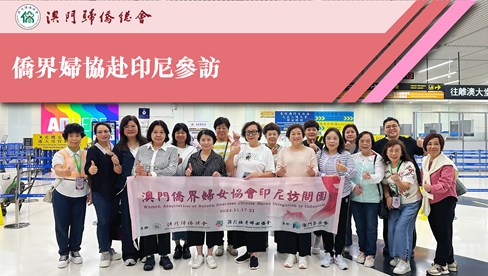 由澳門歸僑總會(huì)、澳門僑界婦女協(xié)會(huì)聯(lián)合主辦,澳門基金會(huì)資助的“澳門僑界婦女協(xié)會(huì)印尼訪問(wèn)團(tuán)” 一行18人於11月17日下午三時(shí)經(jīng)香港前往印尼雅加達(dá)及萬(wàn)隆兩大城市。訪問(wèn)團(tuán)由僑總會(huì)長(zhǎng)劉雅煌擔(dān)任名譽(yù)團(tuán)長(zhǎng)、澳門僑界婦女協(xié)會(huì)永遠(yuǎn)會(huì)長(zhǎng)梁美滿、王國(guó)蓉任隨團(tuán)顧問(wèn)、會(huì)長(zhǎng)鄧婉玲任團(tuán)長(zhǎng),理事長(zhǎng)吳茵娜任副團(tuán)長(zhǎng),開展為期五天的外訪交流活動(dòng)。訪問(wèn)團(tuán)於11月17至21日期間,參訪三語(yǔ)學(xué)校、印尼華人社團(tuán)以及當(dāng)?shù)仄髽I(yè),冀深入瞭解各華人社團(tuán)的發(fā)展與華人企業(yè)在當(dāng)?shù)氐陌l(fā)展以及參與共建“一帶一路”的情況。