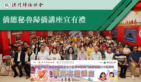 澳門歸僑總會與澳門秘魯歸國華僑協(xié)會合辦、澳門基金會資助的“澳門有禮”講座於七月二十日下午假僑總禮堂舉行。由秘魯歸國華僑協(xié)會理事長胡惠芳擔任講者。僑總副會長陳和標、廖麗瓊、張華、蔡志龍等理監(jiān)事、團體會成員及僑總會員逾一百一十人出席。