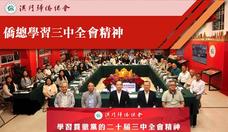 澳門歸僑總會於7月31日下午6時在會址舉行“學習貫徹黨的二十屆三中全會精神座談會”。