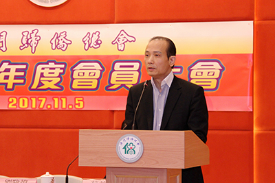 今天,僑總召開2017年度會員大會,選舉產(chǎn)生第十七屆領(lǐng)導(dǎo)團隊,即將迎來本會成立50周年的新挑戰(zhàn),本監(jiān)事會希望並相信,新的領(lǐng)導(dǎo)班子必將繼往開來,傳承創(chuàng)新,為本會配合國家發(fā)展大局,支持特首、特區(qū)政府依法施政,推動澳門僑務(wù)工作的發(fā)展,活躍促進會務(wù)新發(fā)展,繼續(xù)努力拼搏,並作出新貢獻。監(jiān)事會同時殷切希望本會於發(fā)展新會員壯大團隊力量,關(guān)心澳門社會事務(wù)的熱門議題建言獻策,向社會表達僑界聲音,進一步體現(xiàn)僑界融入澳門社會,共建新澳門的承諾。