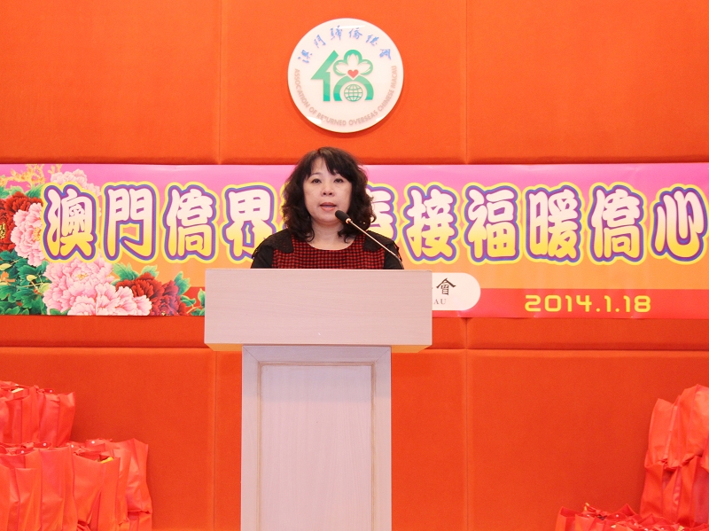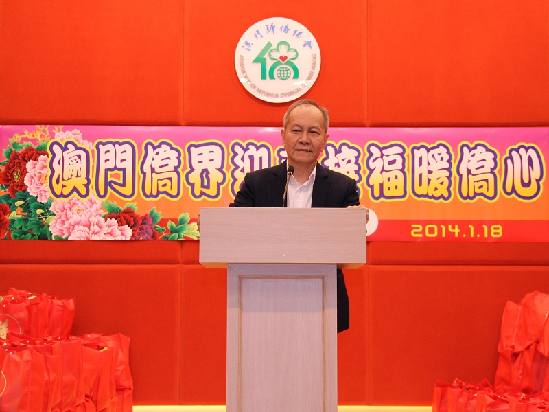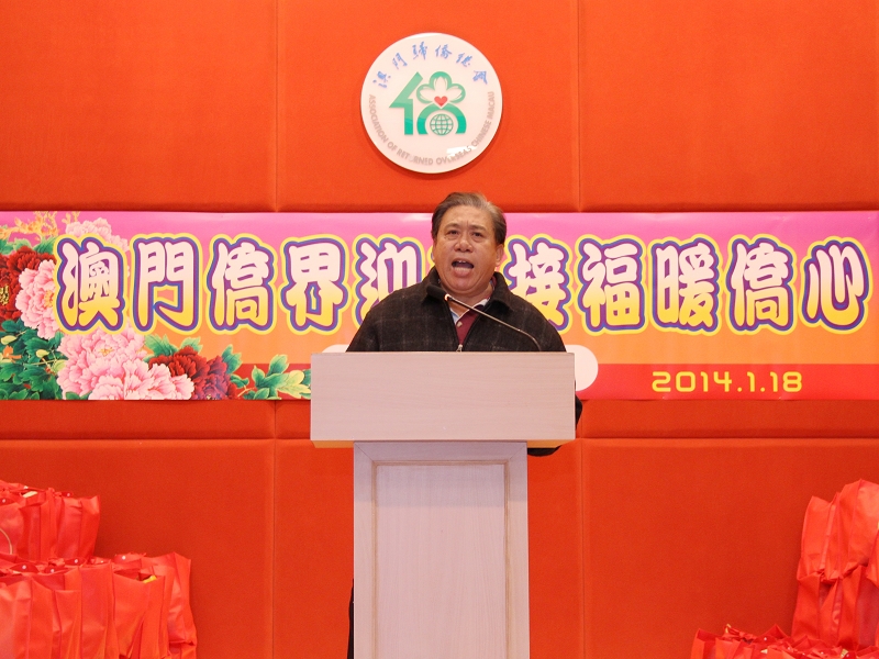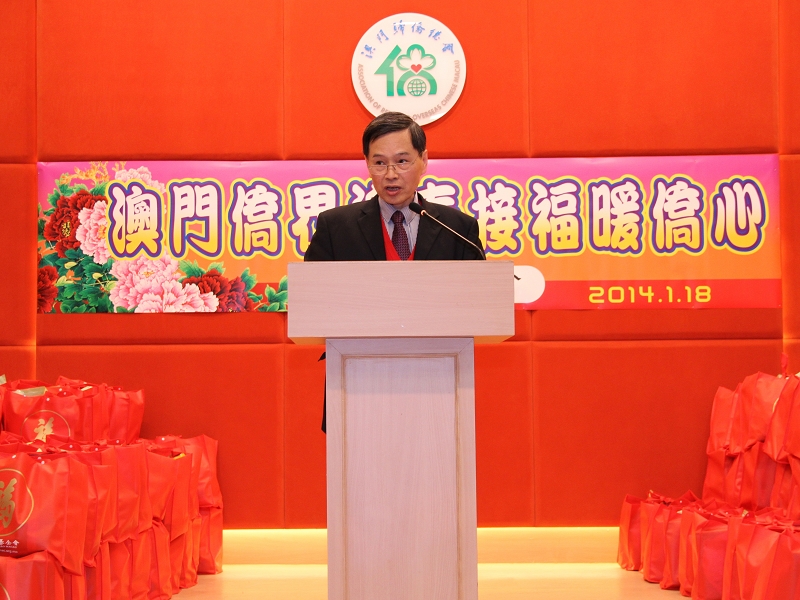 僑總理事長王彬成,緬華互助會主席黃瓊成、秘魯歸國華僑協(xié)會理事長胡惠芳、印尼歸僑協(xié)會副會長梁玖熙、柬埔寨華僑聯(lián)誼會常務(wù)副會長陳和標(biāo)、非洲歸僑聯(lián)誼會理事長廖麗瓊先後致詞,感謝特區(qū)政府、澳門基金會對僑界弱勢群體的關(guān)懷、照顧和節(jié)日慰問。